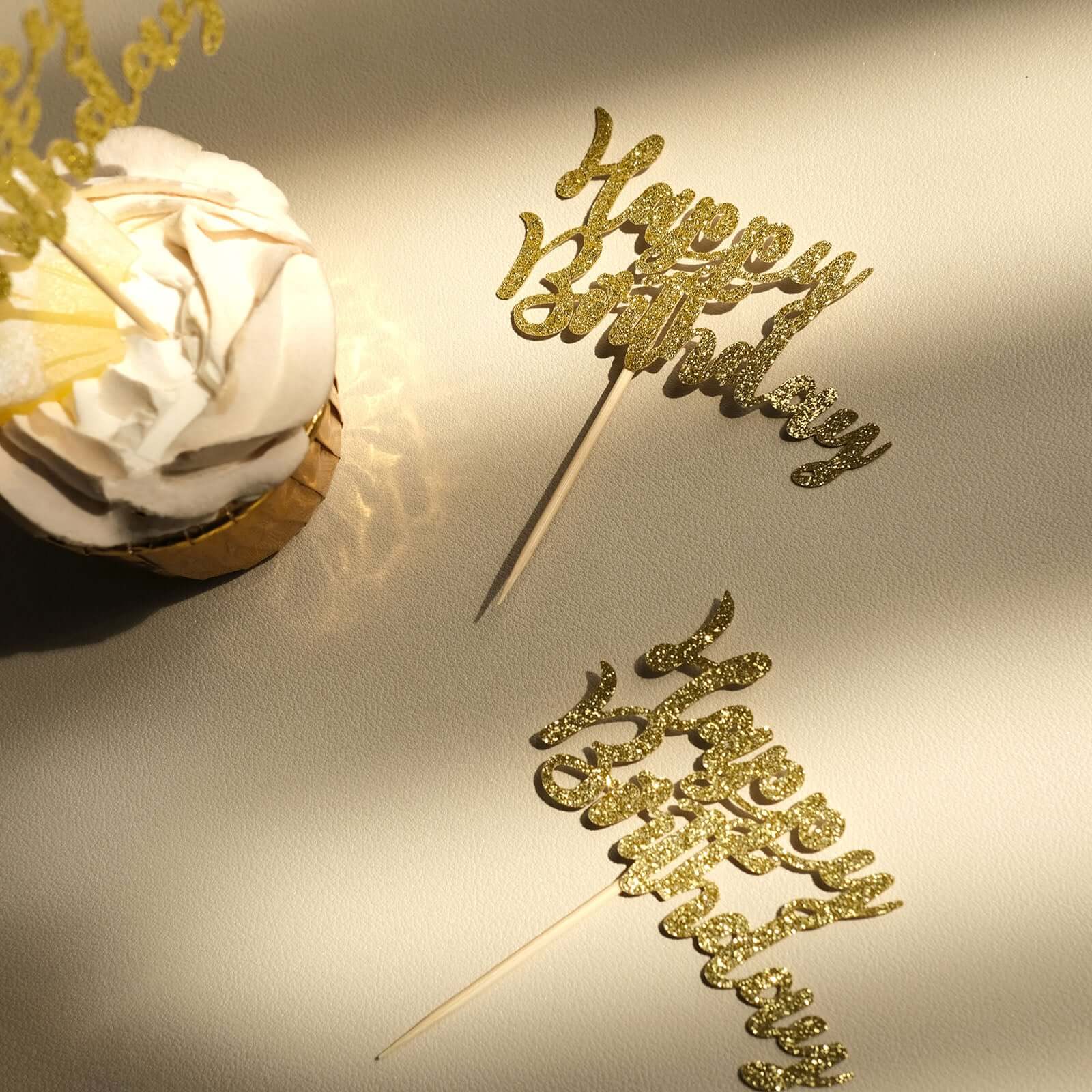 24-Pack Cupcake Toppers Happy Birthday Design Glitter Gold - Party Cake Picks Decoration Supplies