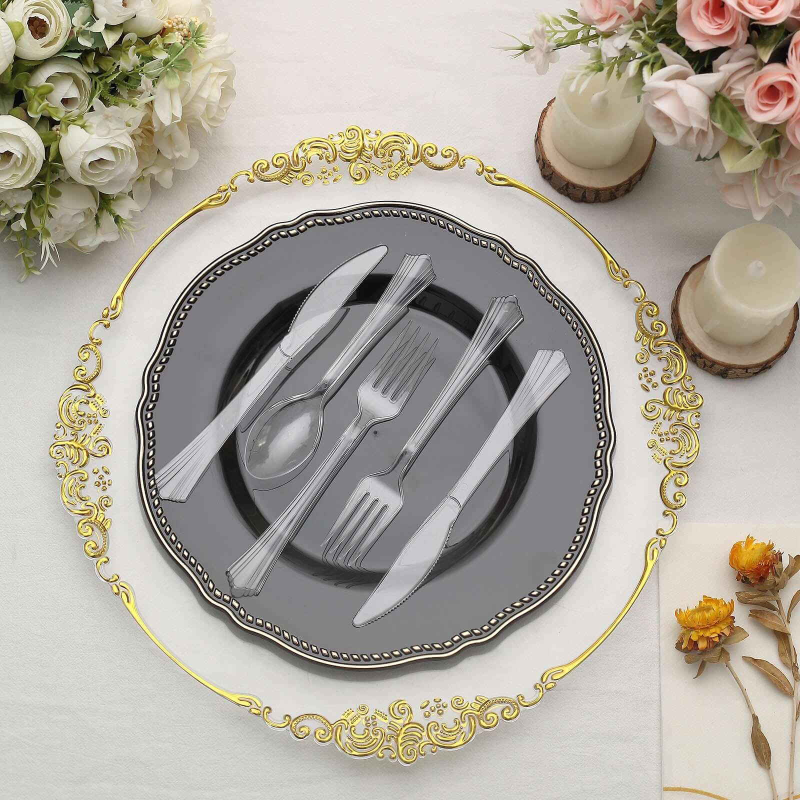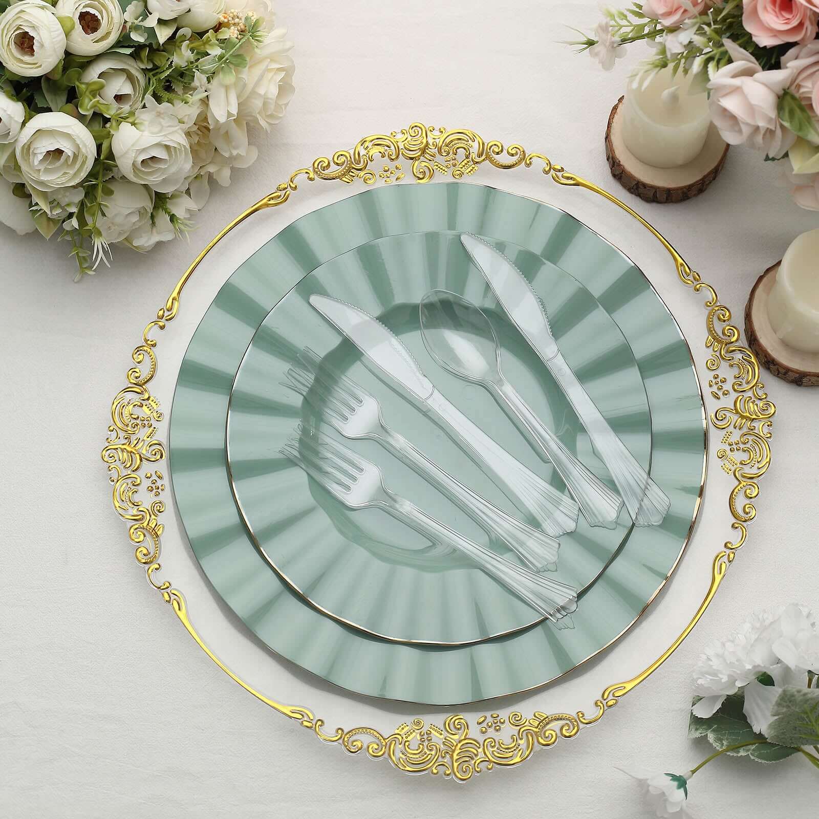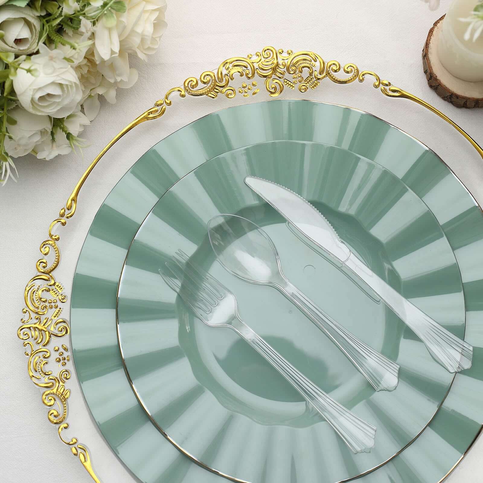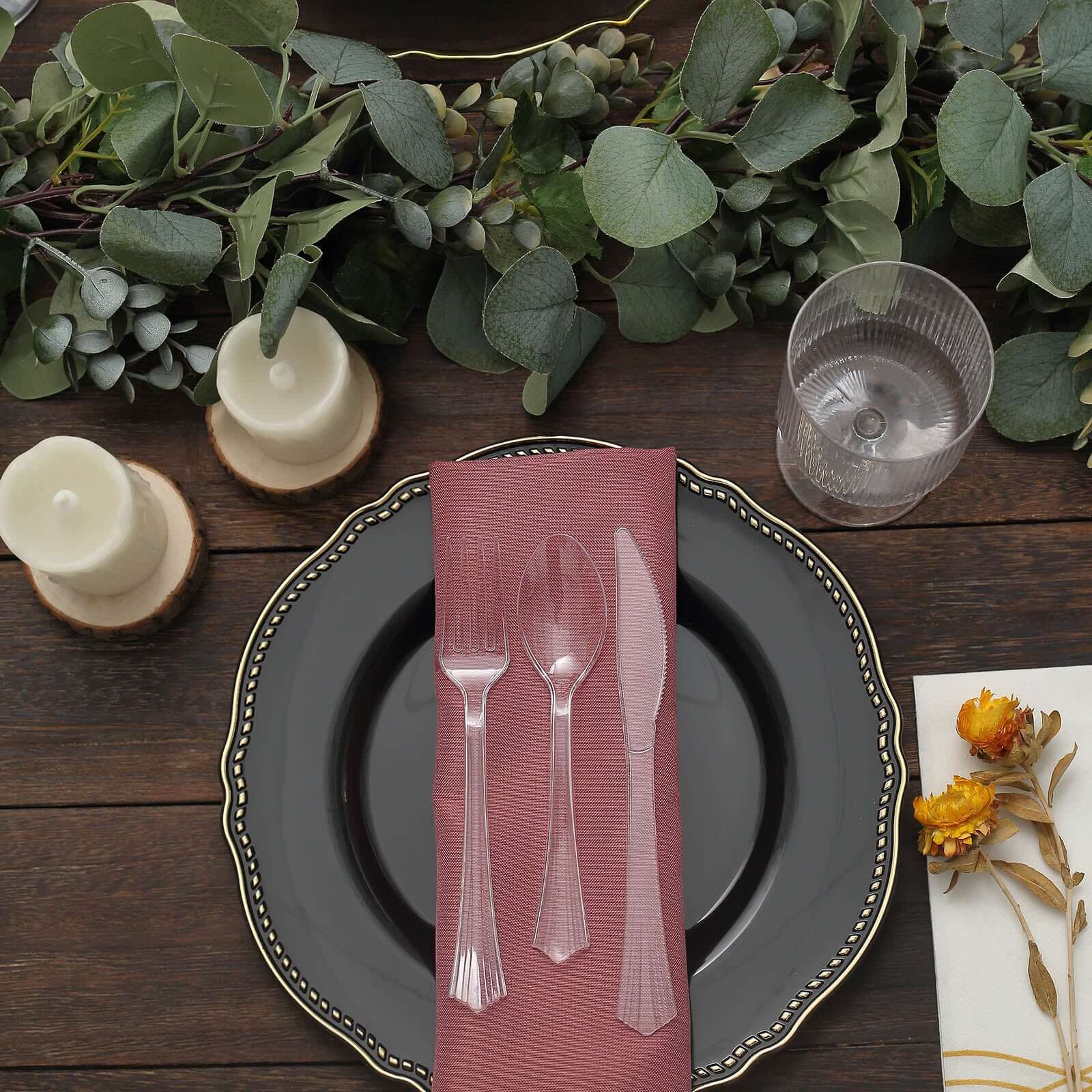 24-Pack Plastic Silverware Set with Fan Flared Tip Handle Clear - Heavy Duty Disposable Utensils 7"