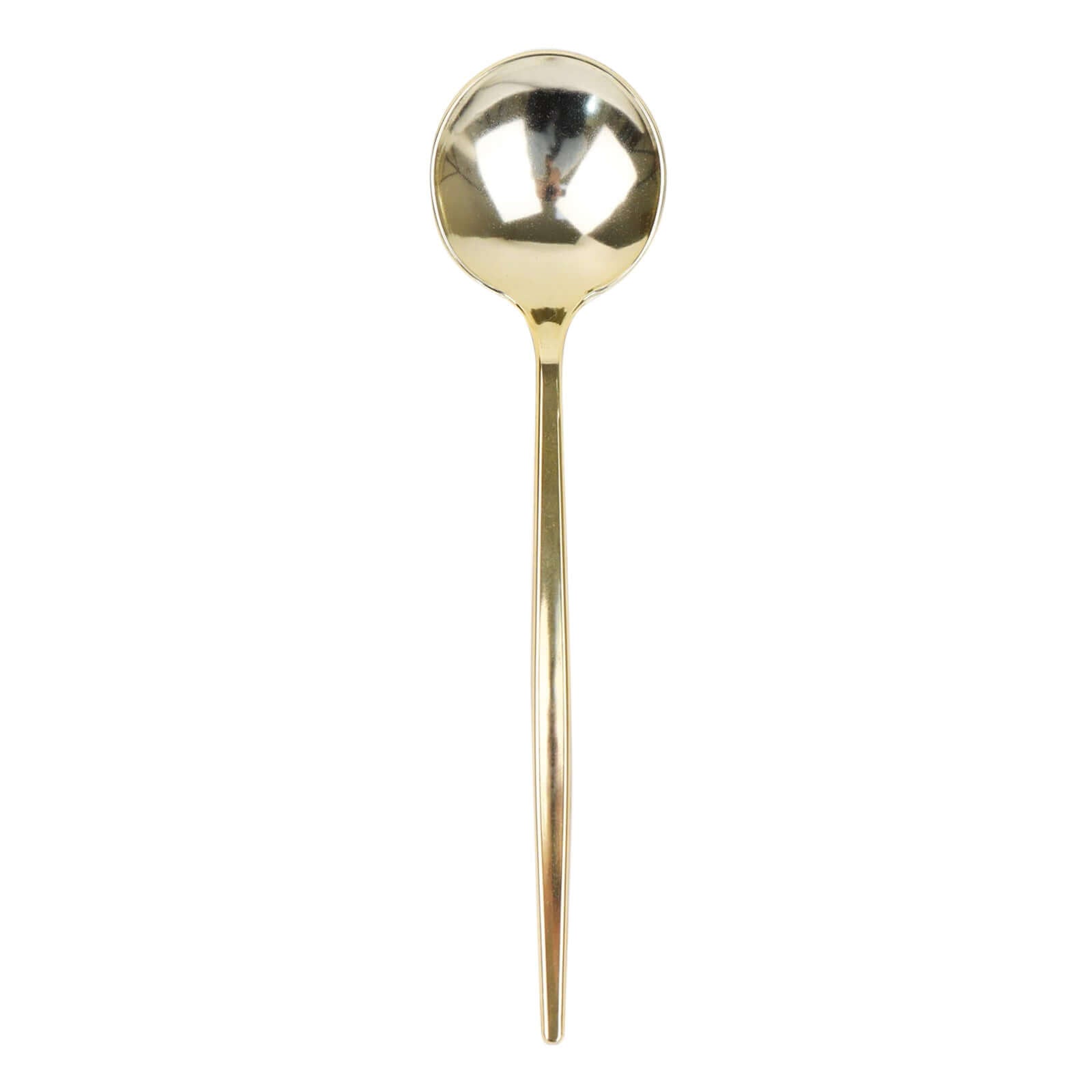 24-Pack Plastic Spoons Glossy Gold - Premium Heavy Duty Disposable Silverware 8"