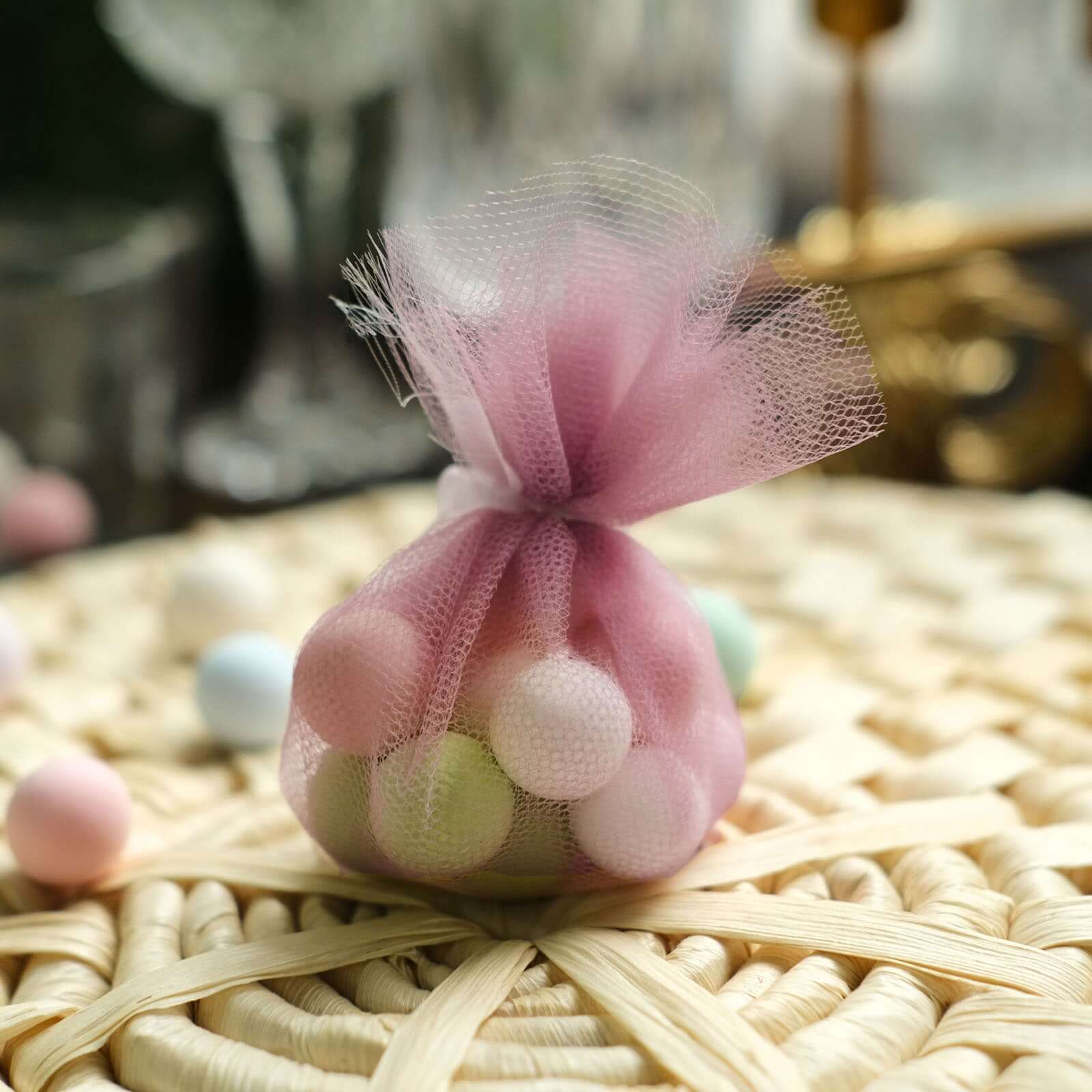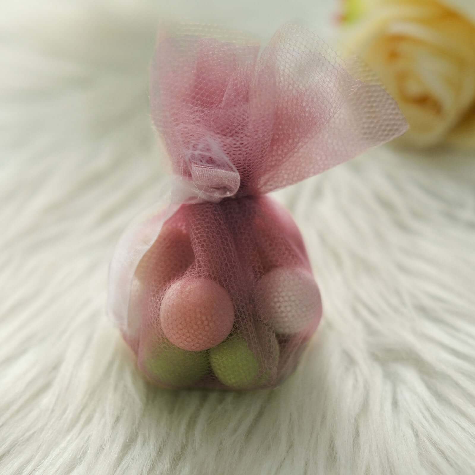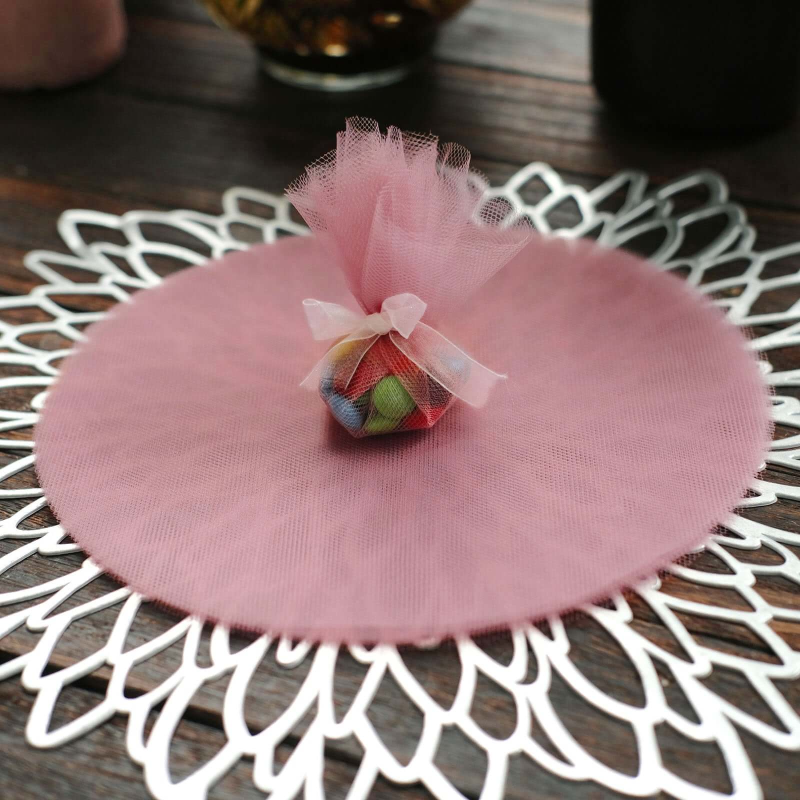 25 Pack 9" Dusty Rose Sheer Nylon Tulle Circles Favor Wrap Craft Fabric, DIY Candy Favor Wraps