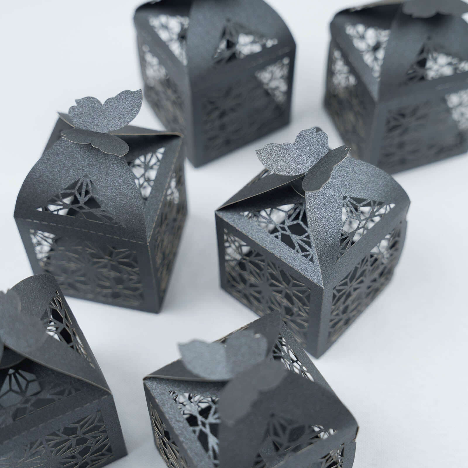 25 Pack Black Butterfly Top Laser Cut Lace Favor Candy Gift Boxes