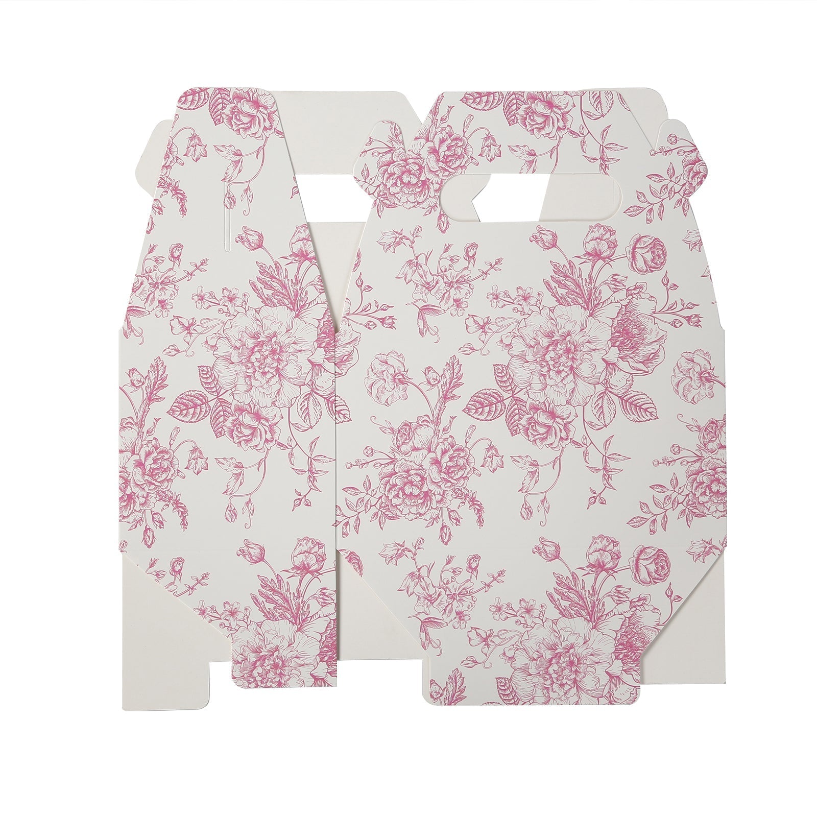 25 Pack Candy Treat Tote Boxes in French Toile Pattern - Matte Pink and White Party Favor Gable Boxes, Cardstock Paper - 6"x3.5"x7"