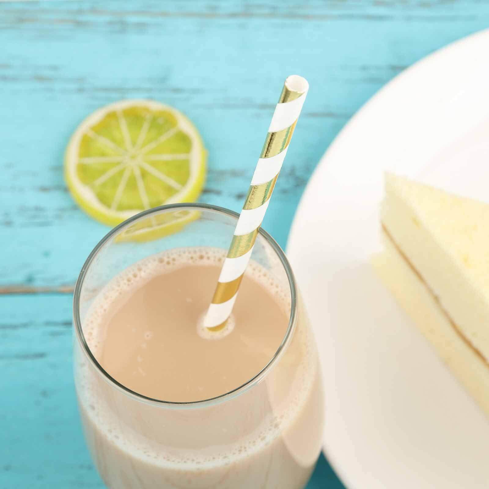 25-Pack Paper Straws White/Gold Striped - Stylish Disposable Straws for Drinks 8"