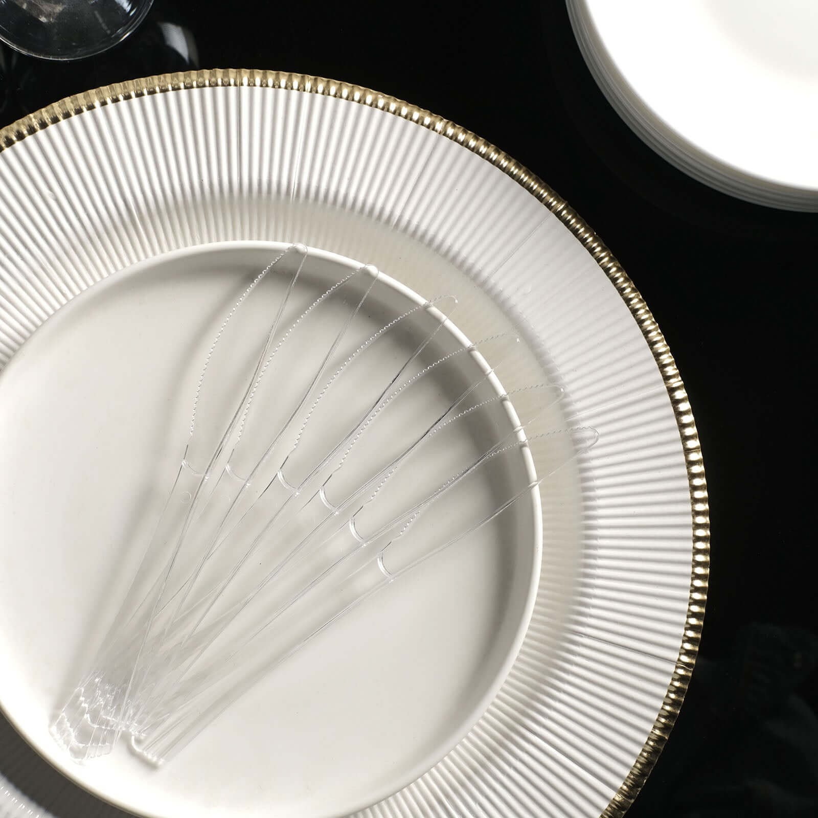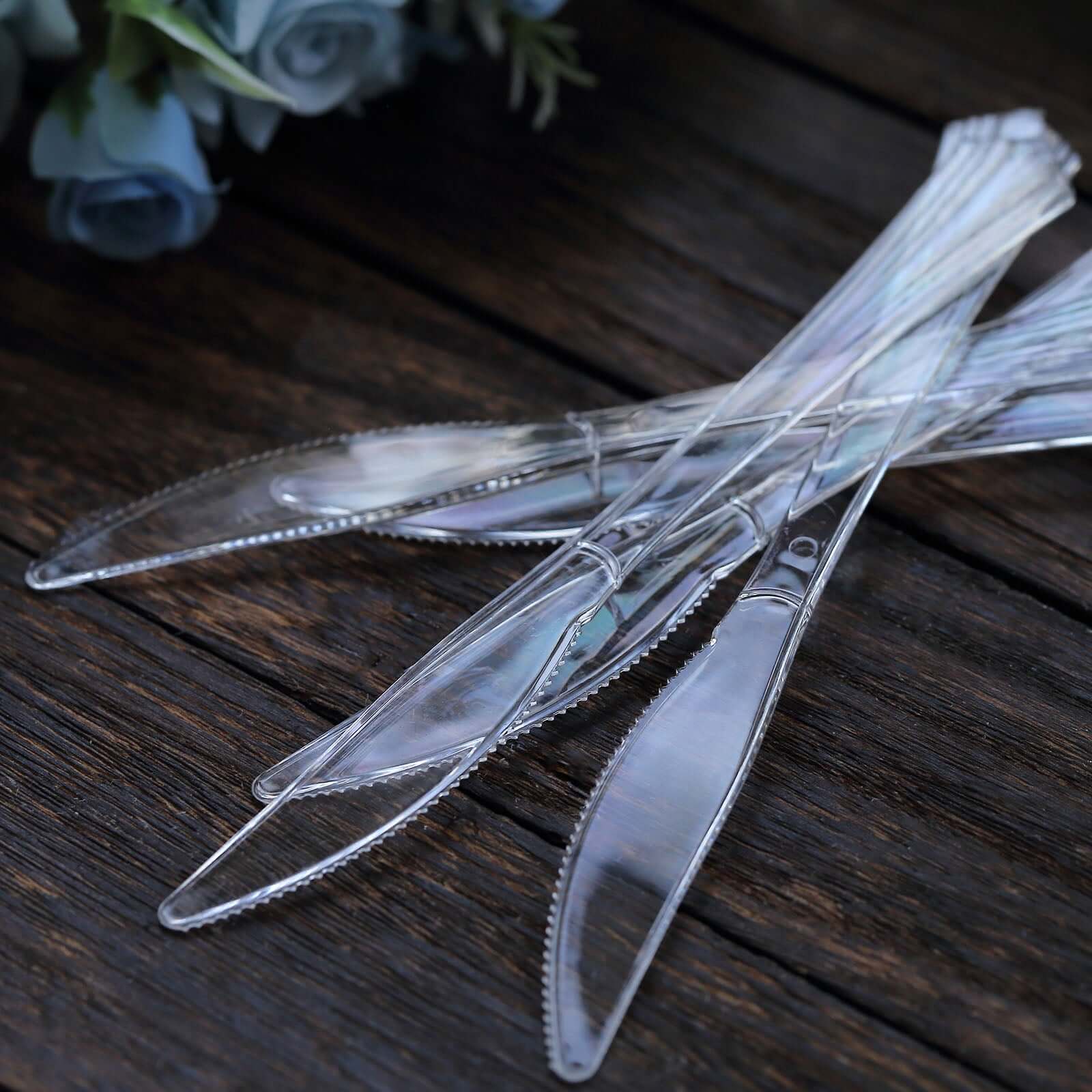 25-Pack Plastic Knives Clear Heavy Duty with Fluted Handles - Durable Disposable Utensils 7"