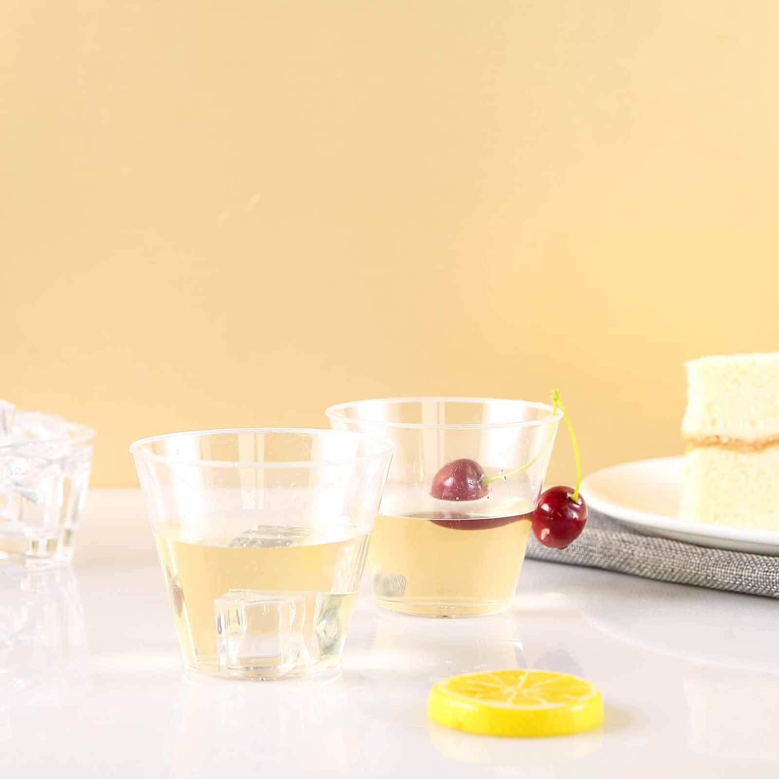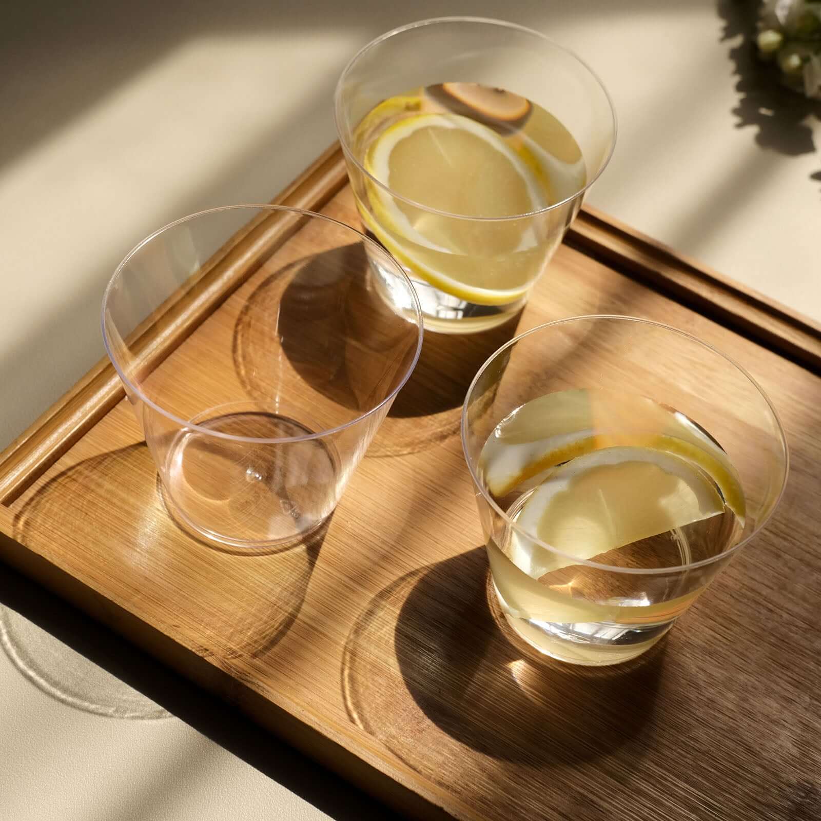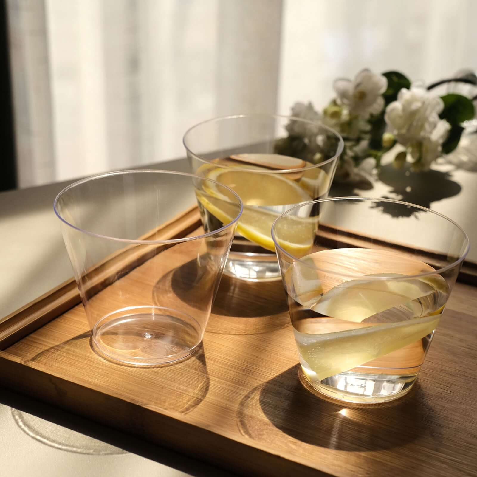 25-Pack Plastic Party Cups Clear Crystal - Stylish Short Disposable Glasses 9oz