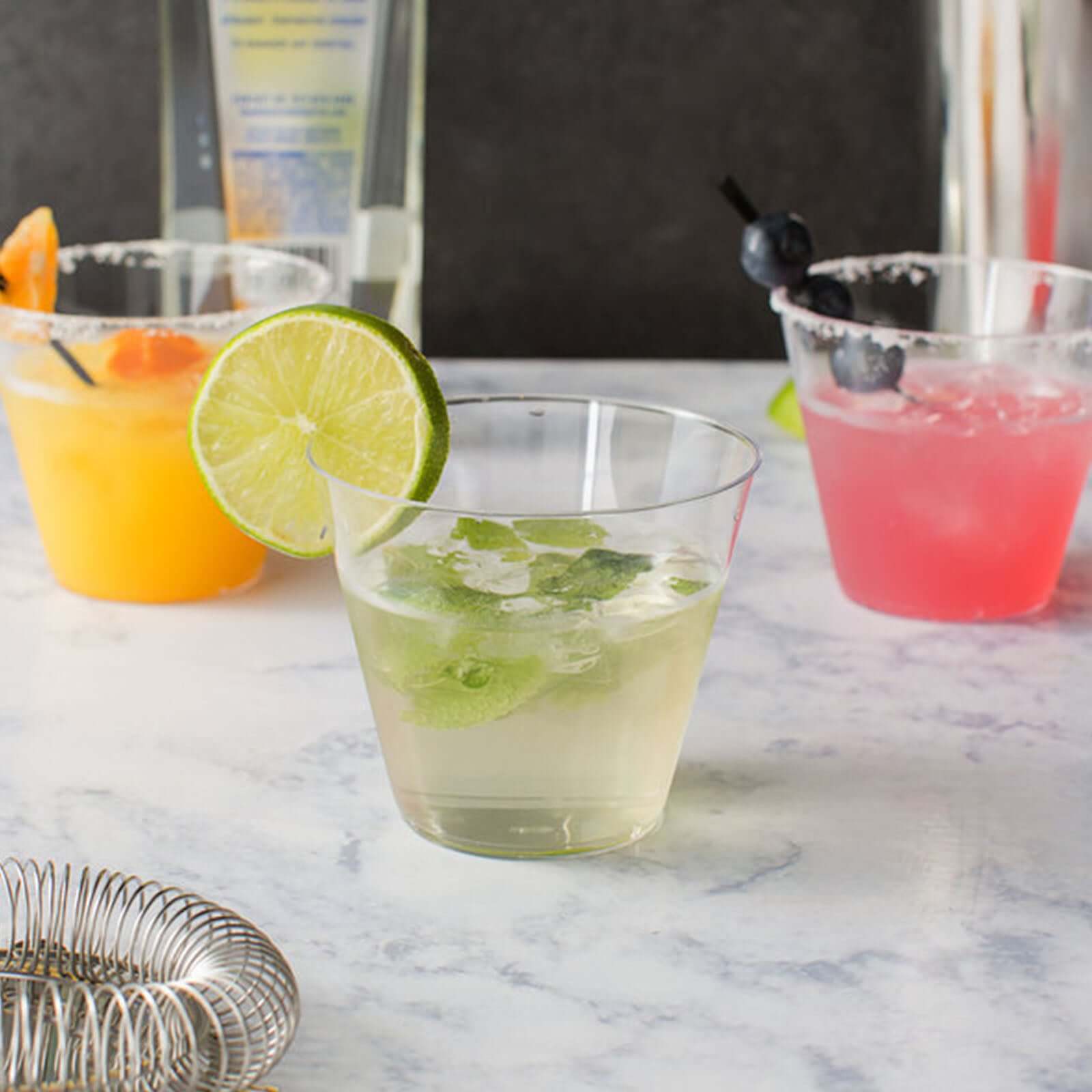Let your festive parties and merry events reflect class and style. Celebrate your special moments in exquisite style with our elite Crystal Collection of Stemware; featuring swish Tumblers, Margarita cups, Champagne glasses, wine glasses, and clear cups etc. Made from premium quality plastic, these chic Tumblers are a perfect blend of affordability and durability. The crystal clear plastic mimics real glass and makes your desserts and drinks look temptingly delicious. Unlike glass, these plastic glasses wont shatter when dropped, this attribute make them an ideal stemware to be used for family and children functions. With the elegance of upscale glass and cost-effectiveness of plastic, these Tumblers are perfect for weddings, bars, casual restaurants, catering events, cocktails parties, clubs, and event for home use. With our Disposable Tumblers, cleaning up time is a breeze!