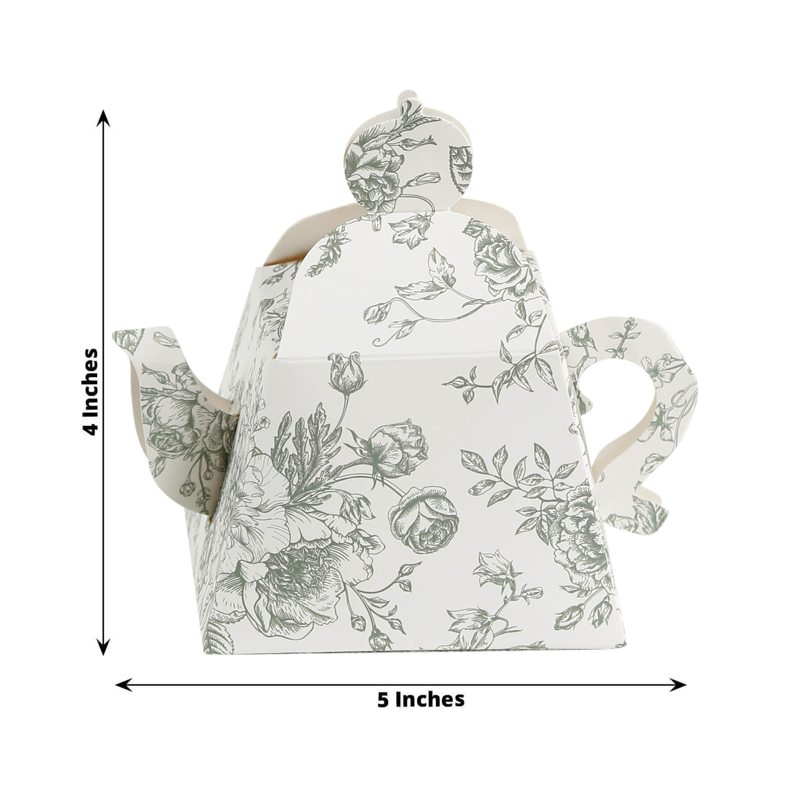 25 Pack 5"x4" Mini Teapot Favor Boxes – White Sage Green French Toile Design Gift Boxes