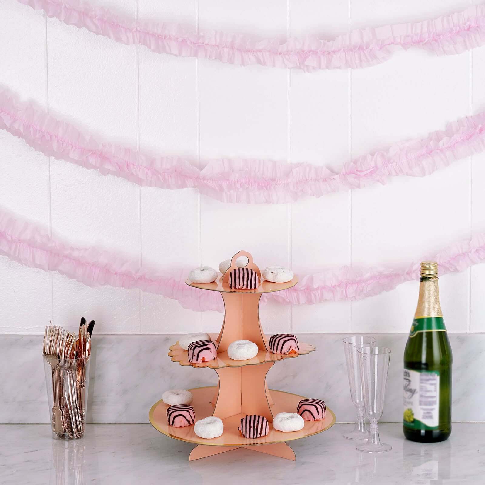 3 Pack 28ft Blush Ruffled Paper Streamer Rolls, Crepe Tissue Party Decorations