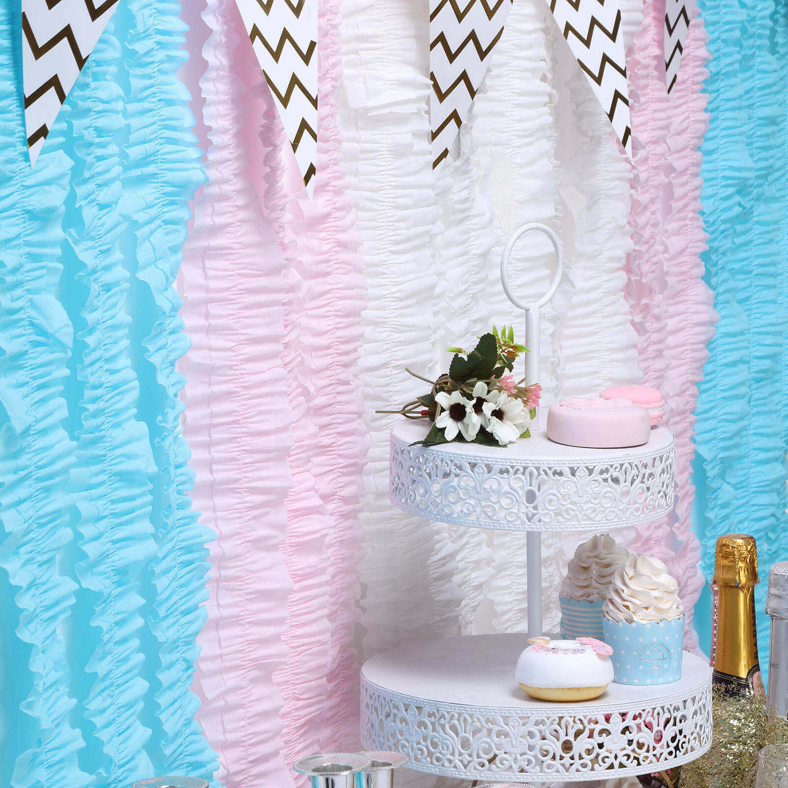 3 Pack 28ft Light Blue Ruffled Paper Streamer Rolls, Crepe Tissue Party Decorations