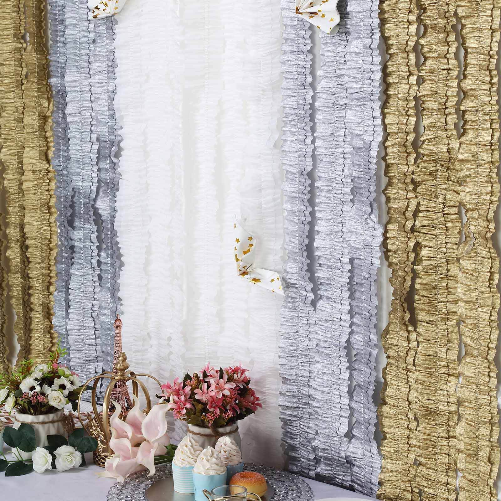 3 Pack 28ft White Ruffled Paper Streamer Rolls, Crepe Tissue Party Decorations