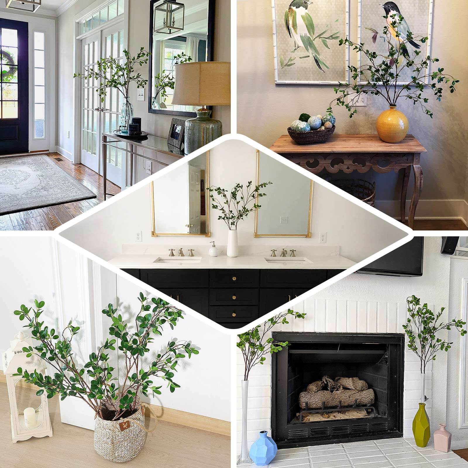 3 Pack 43" Artificial Green Petal Branches Leaf Spray, Faux Leaf Branches