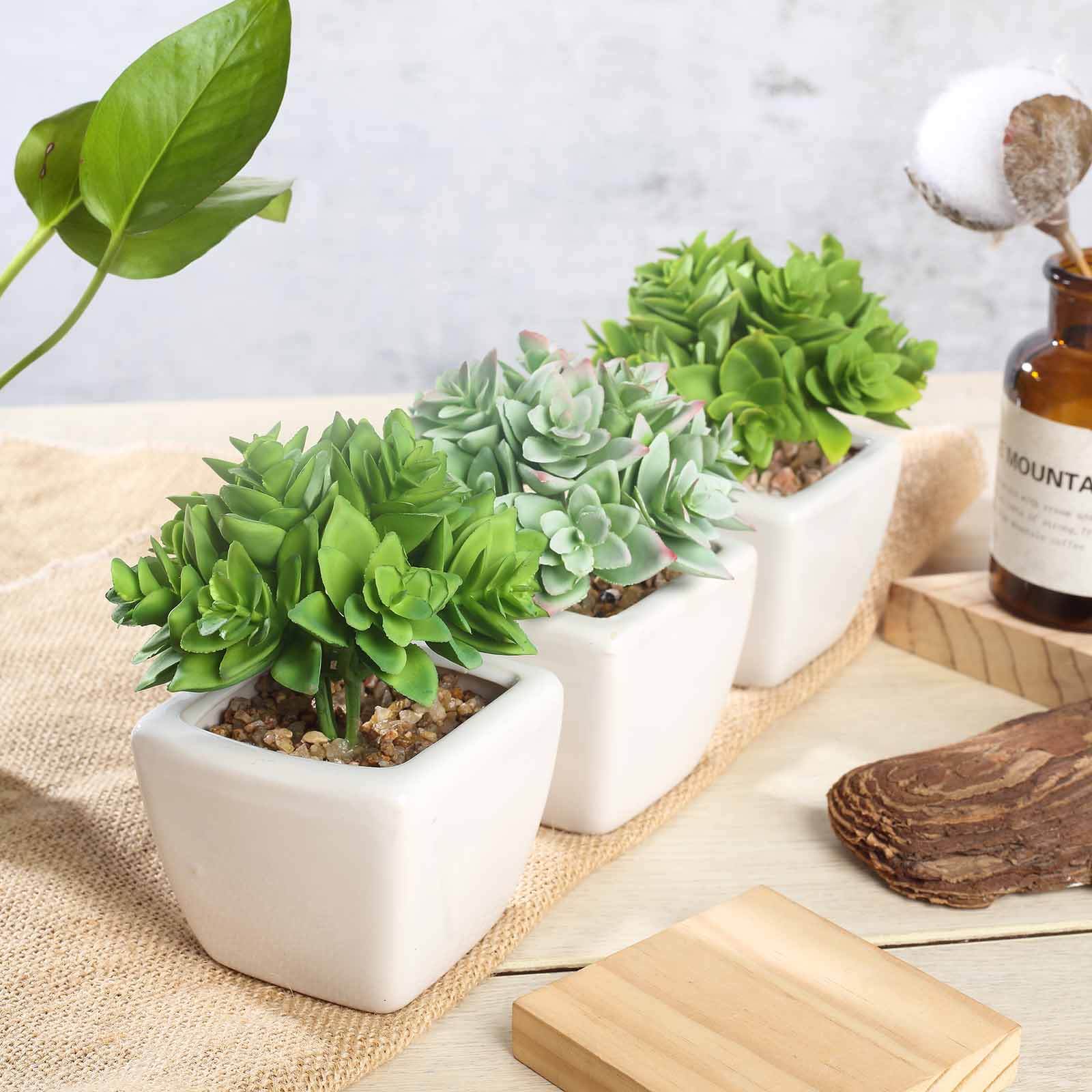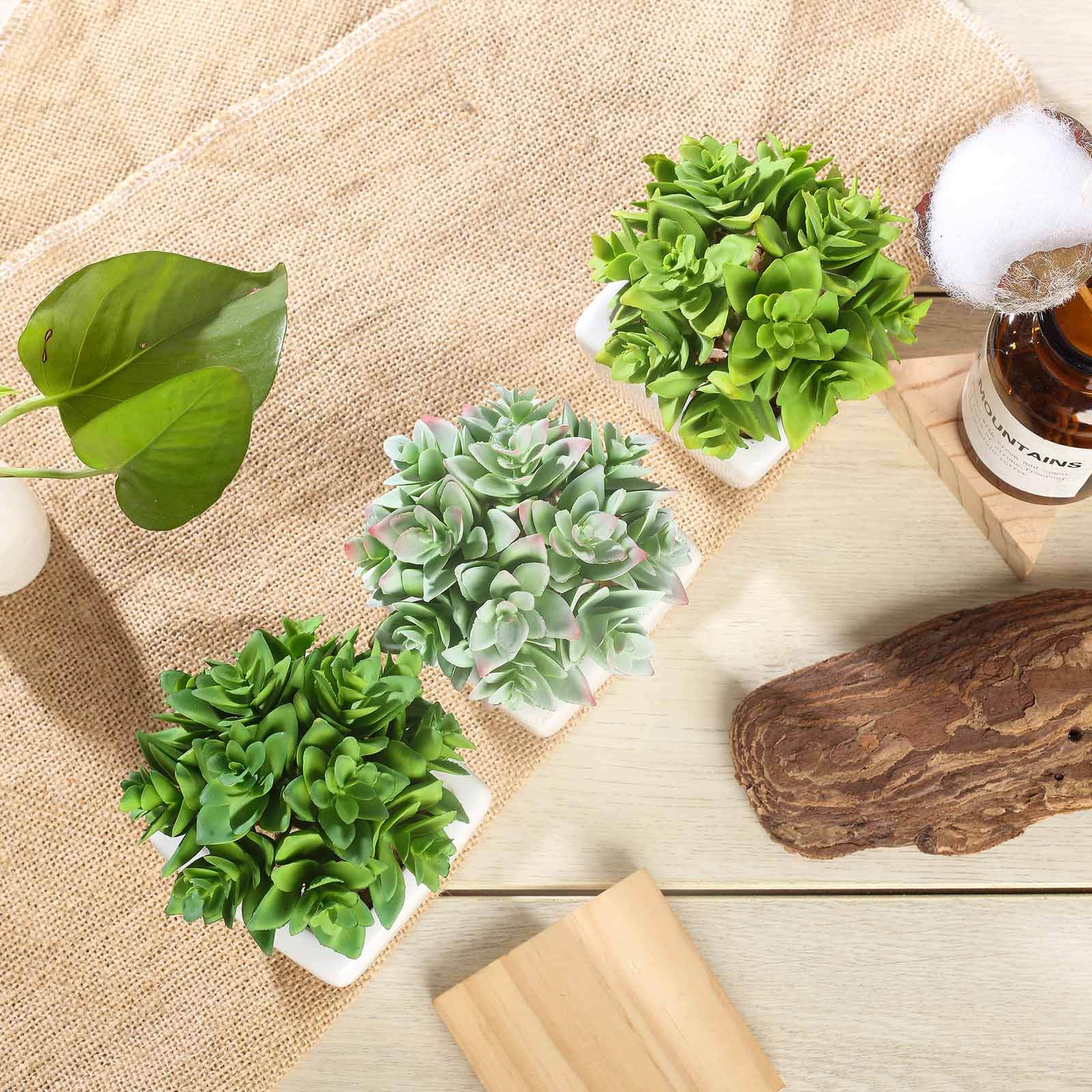 3-Pack Echeveria Artificial Succulents in Ceramic Pot Green - Lifelike Decorative Faux Plants for Home Office & Event Design 4"