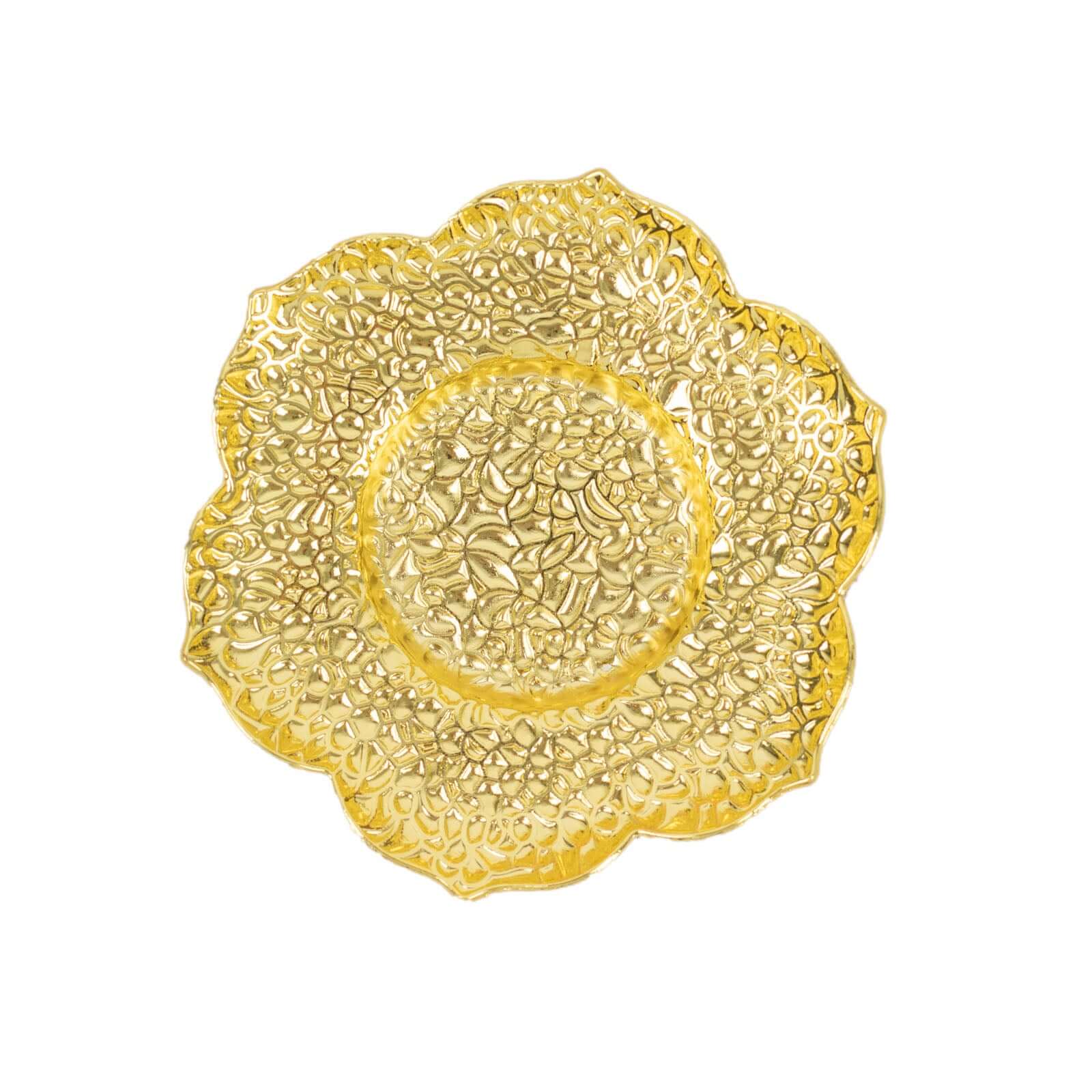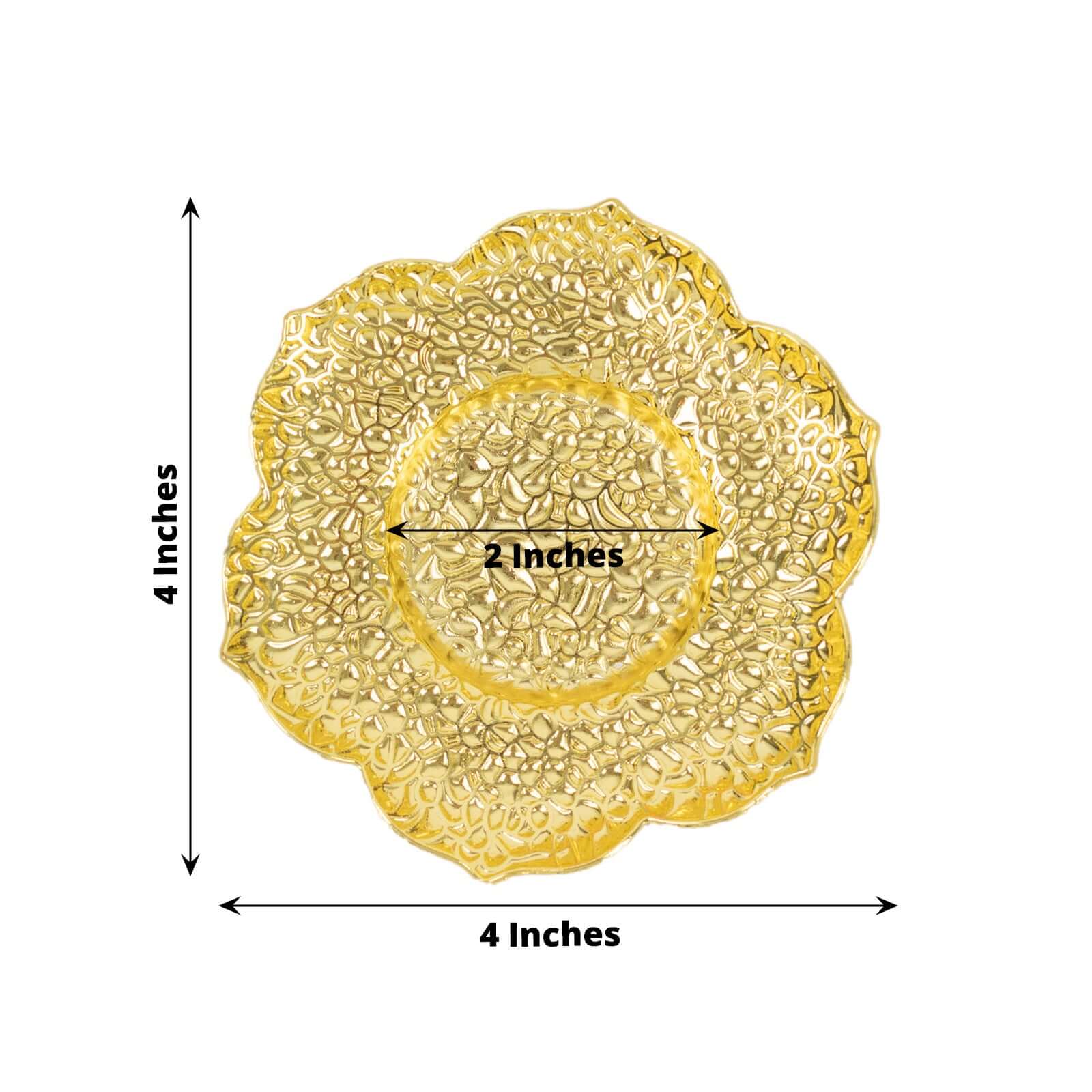 3-Pack Metal Votive Candle Holders Plum Blossom Design Shiny Gold - Vintage Mini Tea Cup Saucers 4"