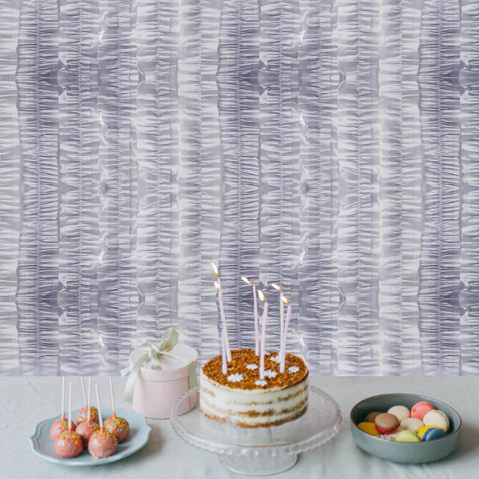 3 Rolls 28ft Silver Ruffled Tissue Paper Party Streamers, Crepe Paper Backdrop Decorations