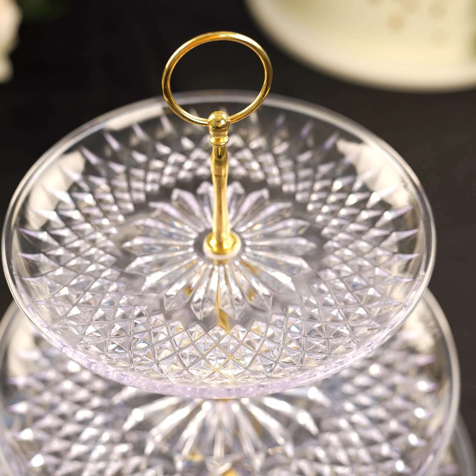 3-Tier Acrylic Cupcake Stand Clear - Sturdy Dessert Serving Tray Platter with Gold Top Handles for Classy Special Occasions & Dessert Buffets 12"