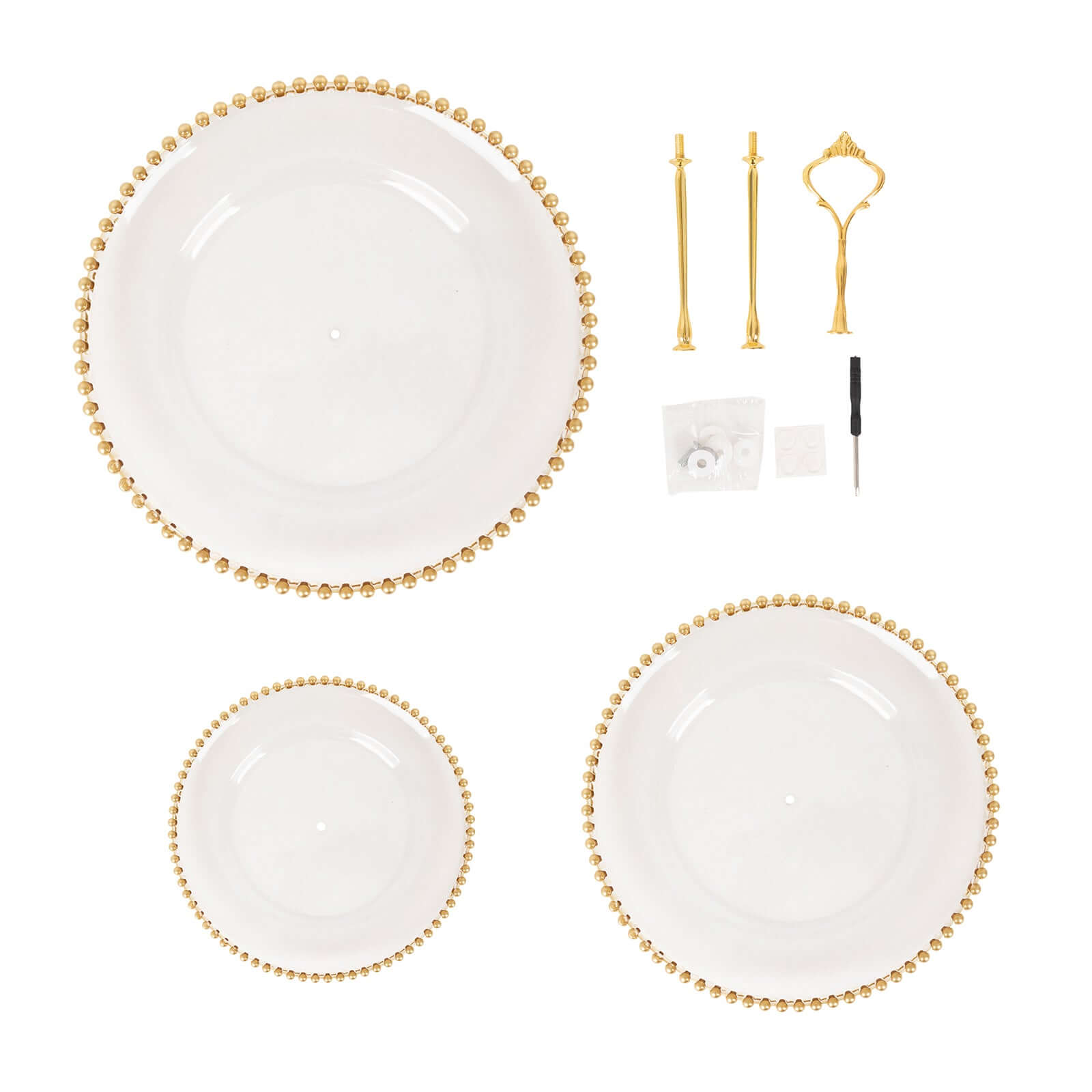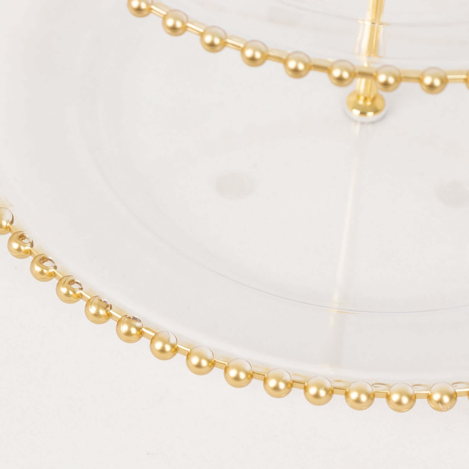 3-Tier Plastic Round Cupcake Tower Stand Clear - Versatile Dessert Display Tea Party Serving Platter with Gold Beaded Rim & Top Handle 14"