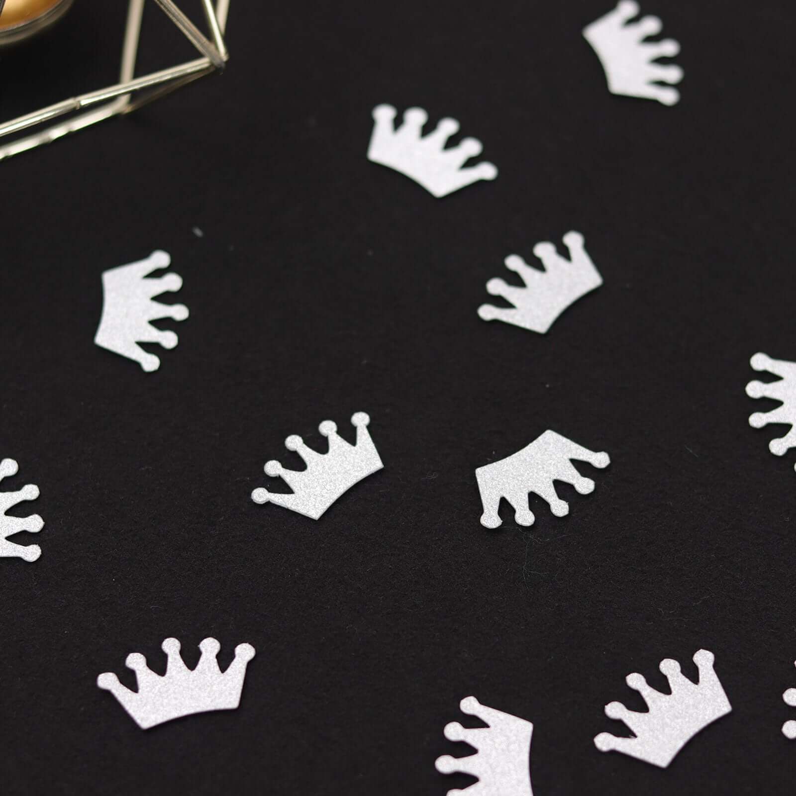 300 Pcs Glitter Princess Crown Paper Confetti Double-Sided Silver, Baby Shower Party Table Scatters - Decorative & Sparkling Design