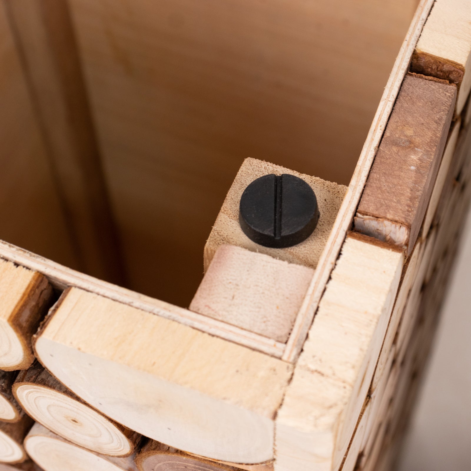 - The product is made from natural material. In the case of wood warps and cracks or if the wood block falls, attach it to the surface with AB glue included in the box.