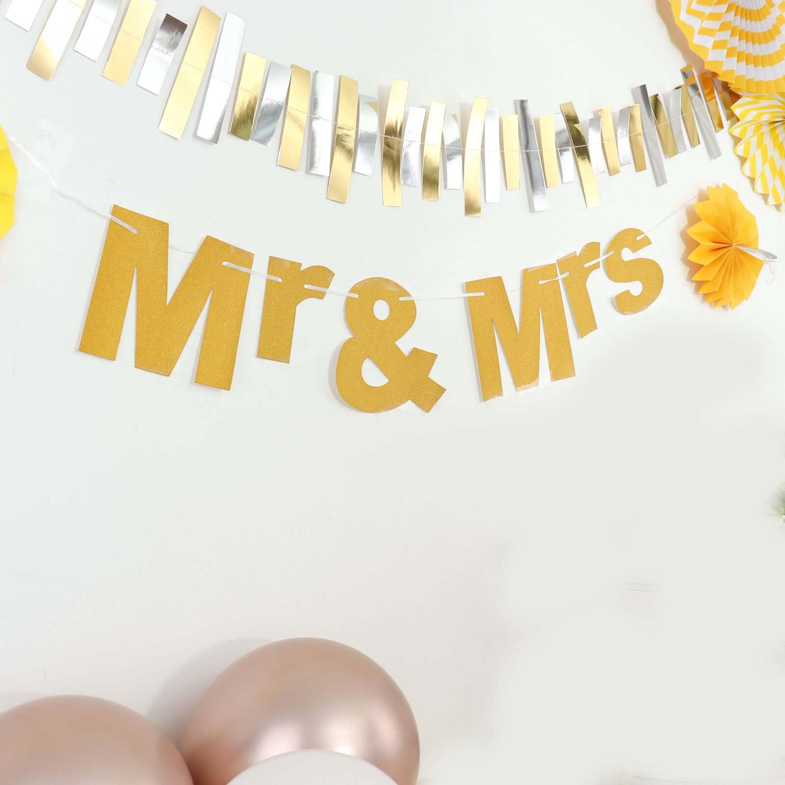 3ft Gold Glittered Mr and Mrs Paper Hanging Wedding Anniversary Banner, Party Garland Banner