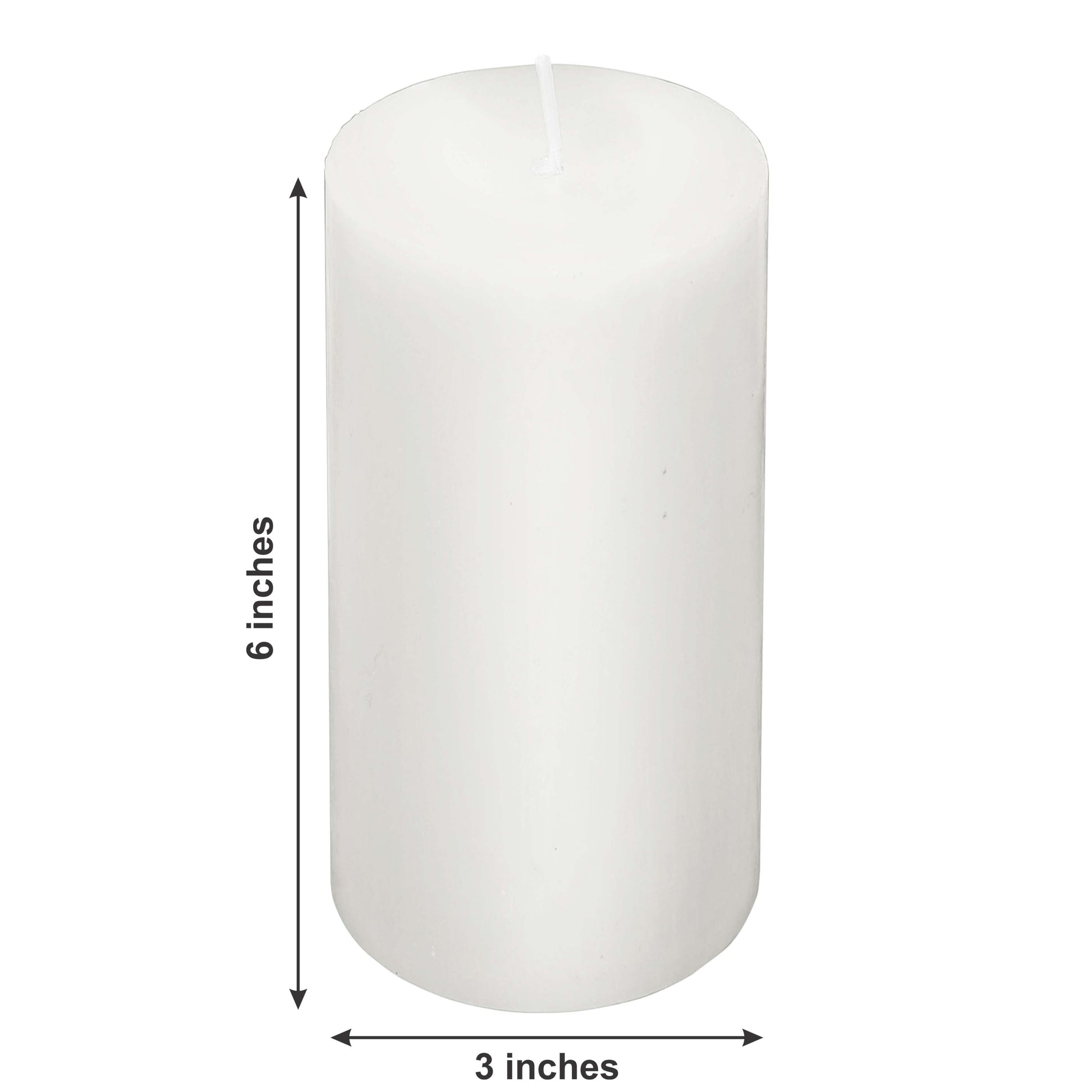 6-Pack Unscented Dripless Pillar Candles – 3"x6" White Paraffin Wax with Smokeless Cotton Wicks, Clean & Long-Lasting 60-Hour Burn