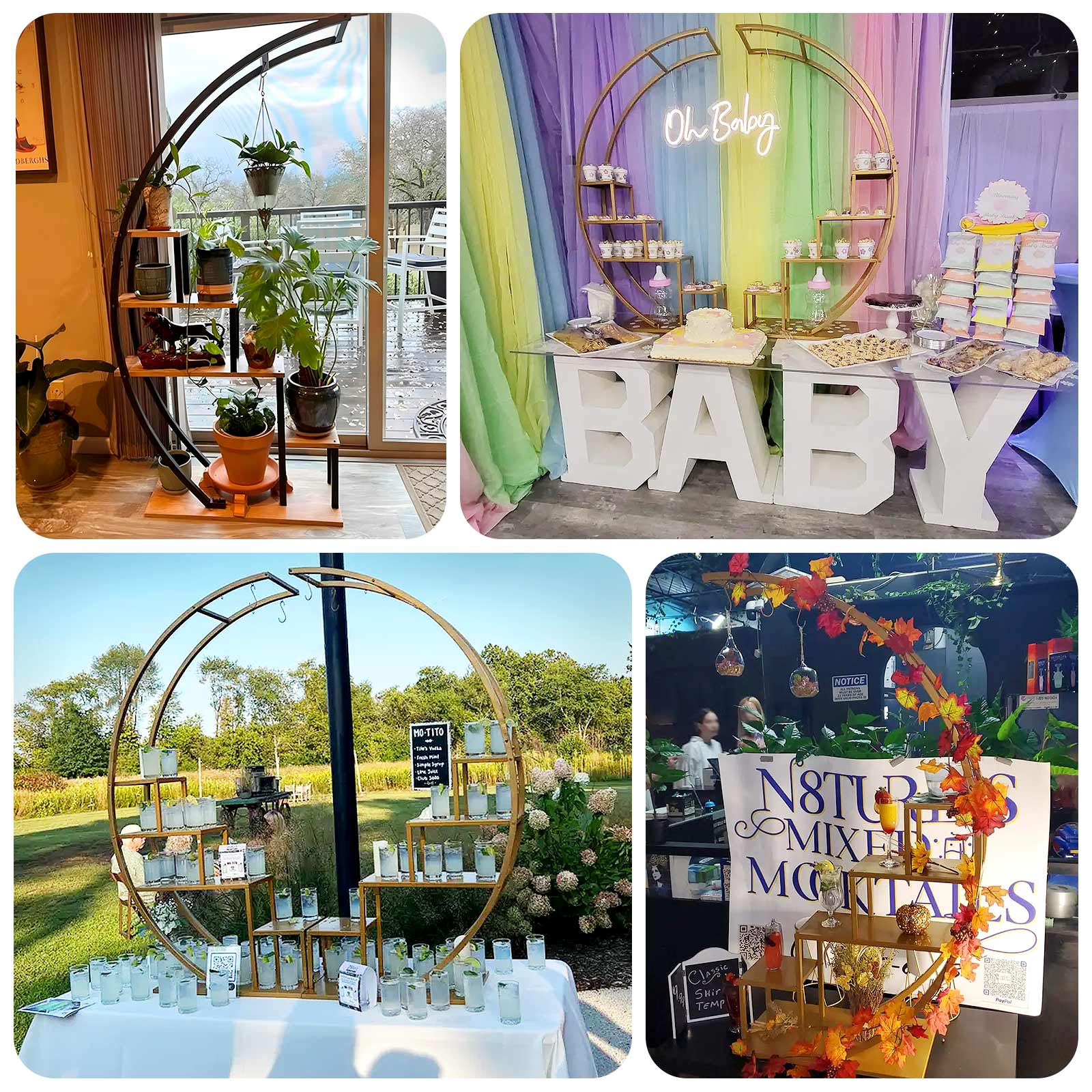 4.5ft Gold Metal 4-Tier Half Moon Cupcake Dessert Display Stand, Hanging Plant Rack With Shelves