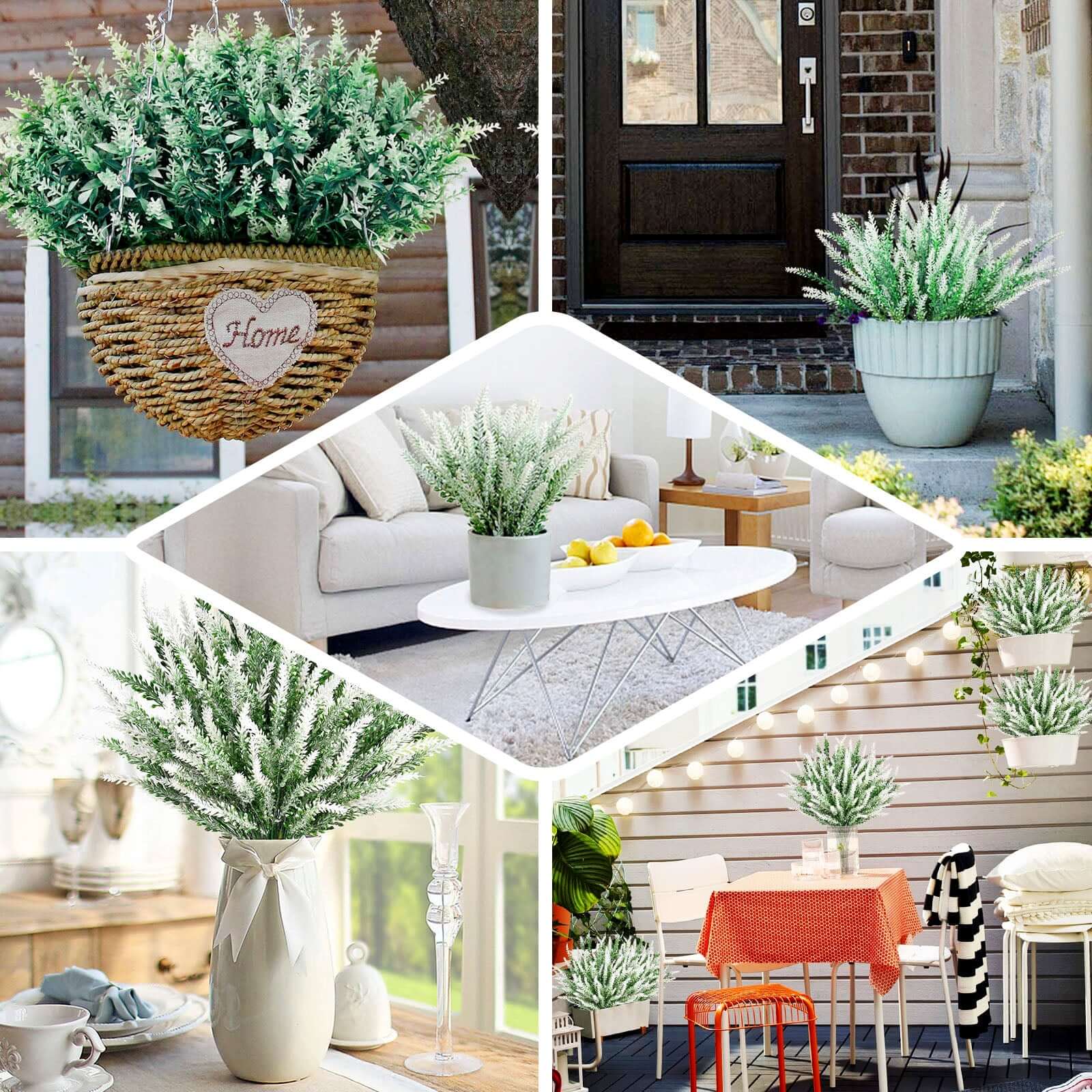 4 Bushes 14" Green White Artificial Lavender Flower Plant Stems Greenery