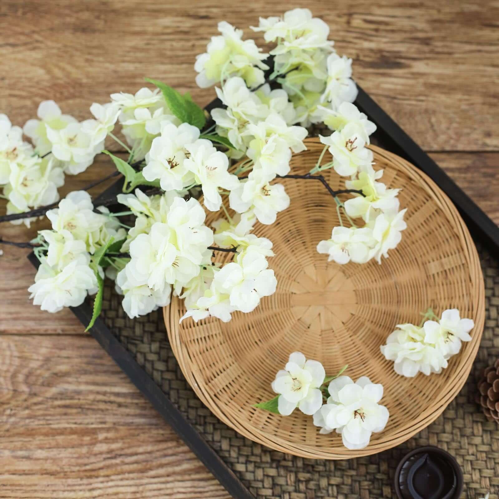 4 Bushes 40" Tall Cream Artificial Silk Cherry Blossom Flowers, Branches
