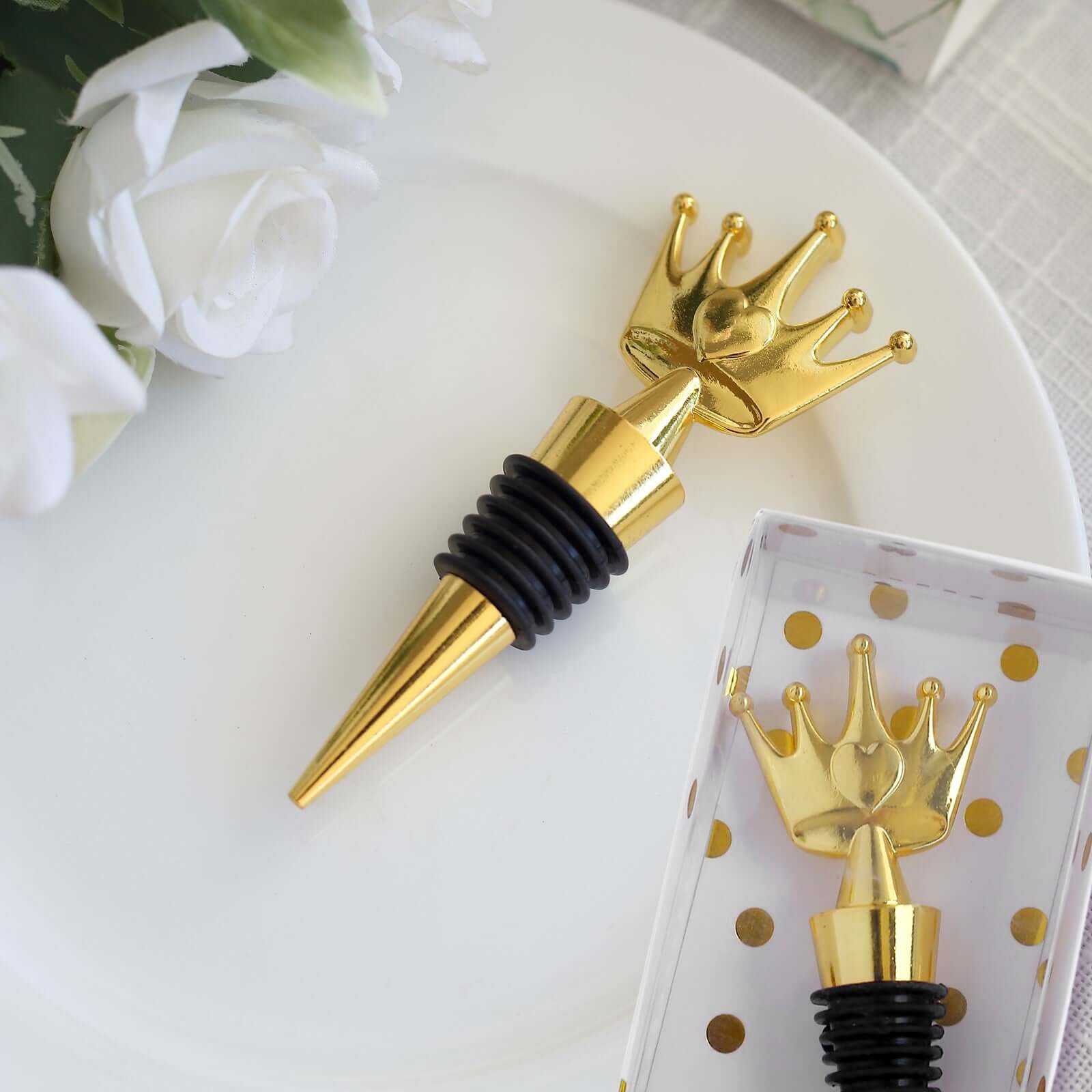 4" Gold Metal Princess Crown Wine Bottle Stopper Party Favor with Clear Gift Box, Thank You Tag and Ribbon