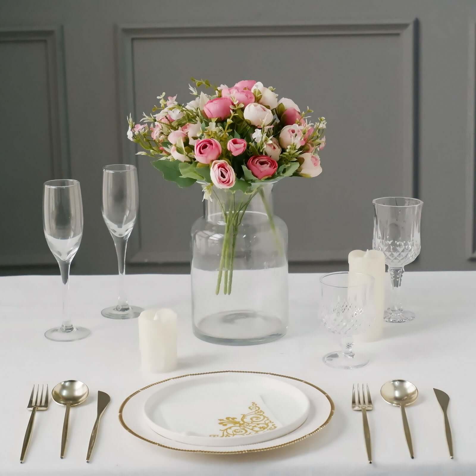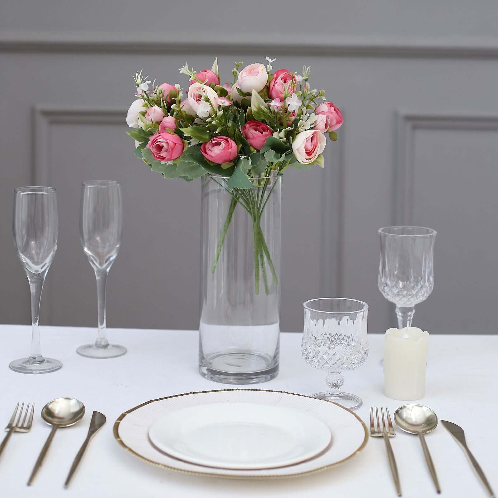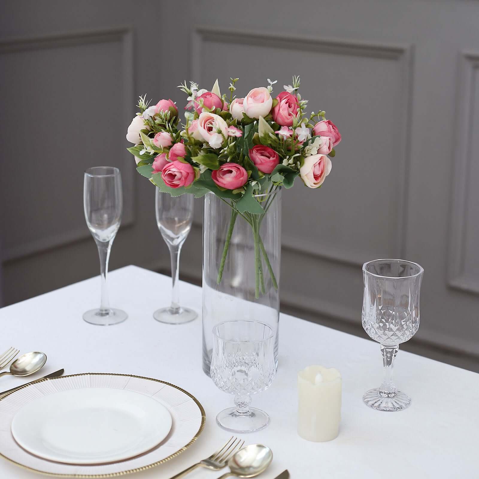 4 Pack 12" Artificial Pink Ranunculus Silk Flower Bridal Bouquets, Faux Buttercup Floral Arrangement