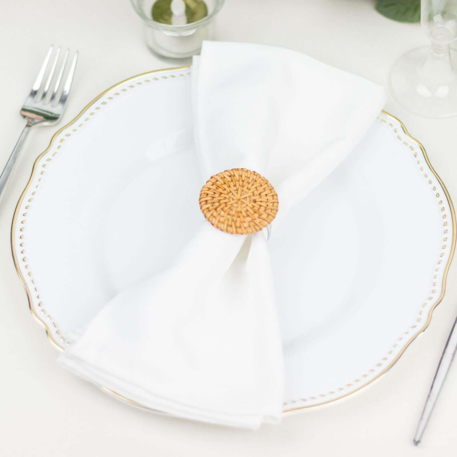 4 Pack 2" Natural Rustic Style Jute Rattan Metal Napkin Rings, Handmade Boho Chic Woven Serviette Buckle Holders