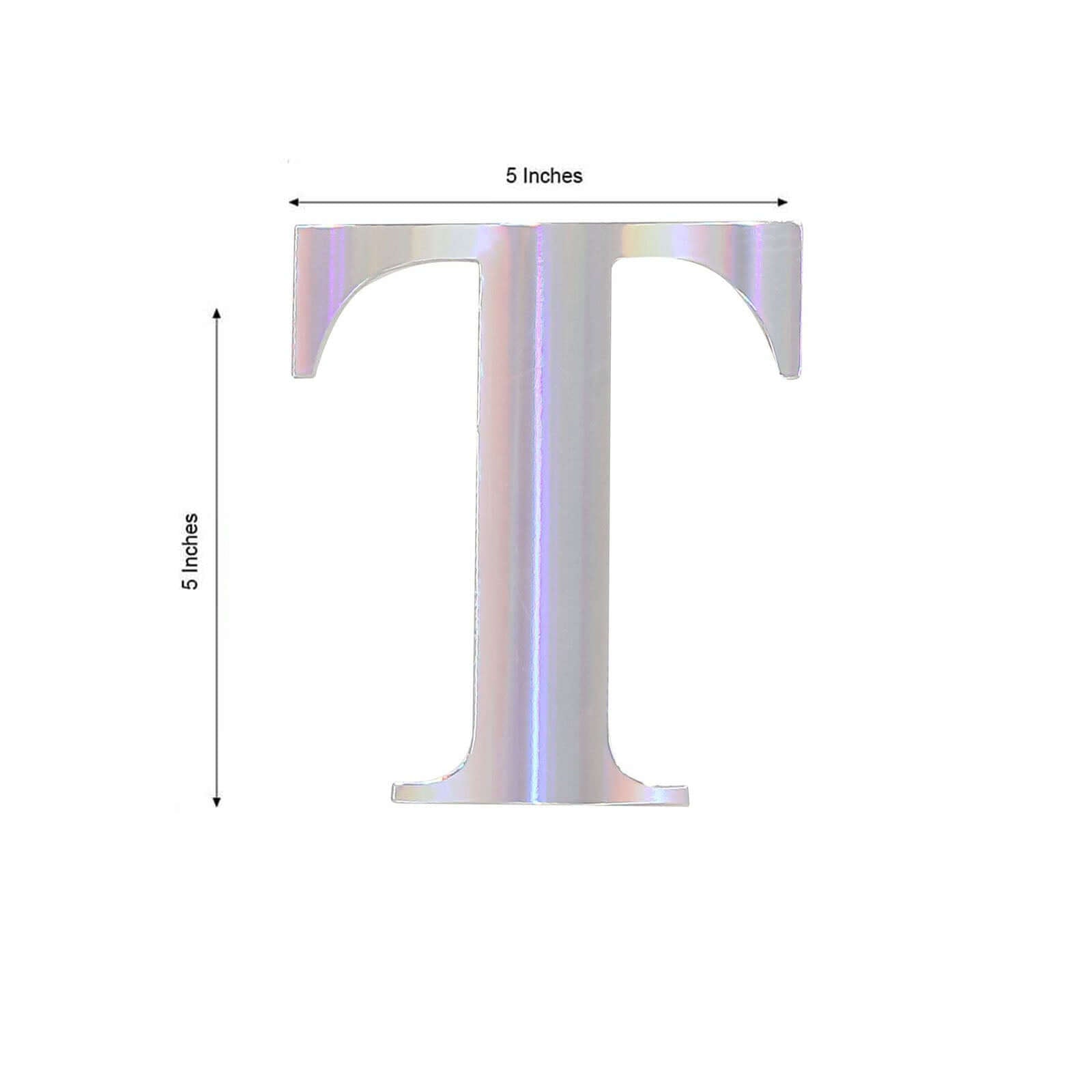 4 Pack 5" Iridescent Alphabet Stickers Banner, Customizable Stick on Letters - T