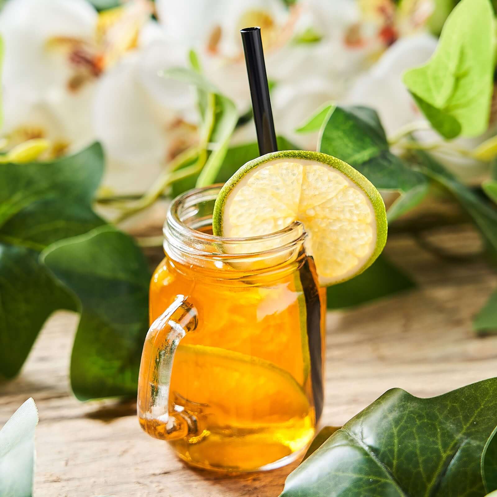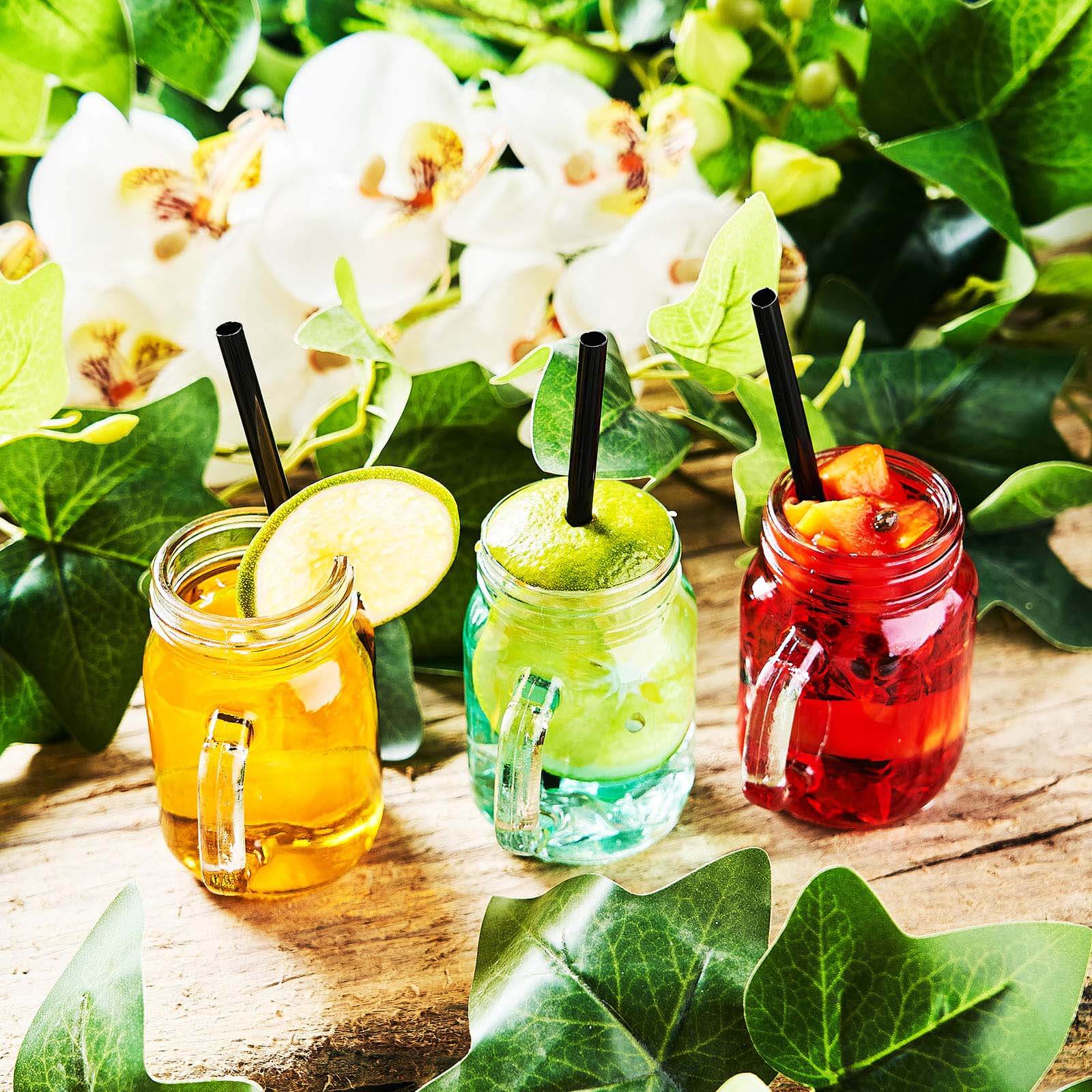 4-Pack Glass Mason Jars Rustic Design Clear with Handles and Rose Gold Screw-On Lids - Trendy Containers for Drinks & Events 4oz
