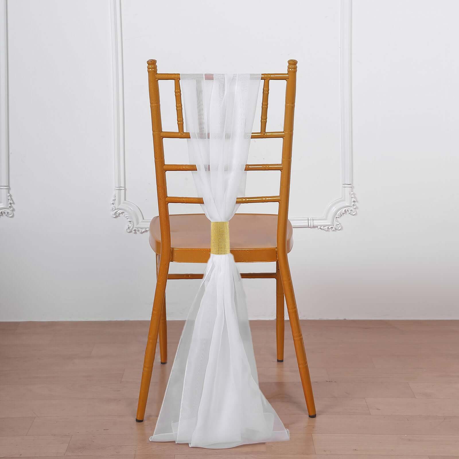 4 Pack Gold Rhinestone Mesh Velcro Backdrop Curtain Bands, Large Chair Sash Clip Tie Backs - 5"X10"