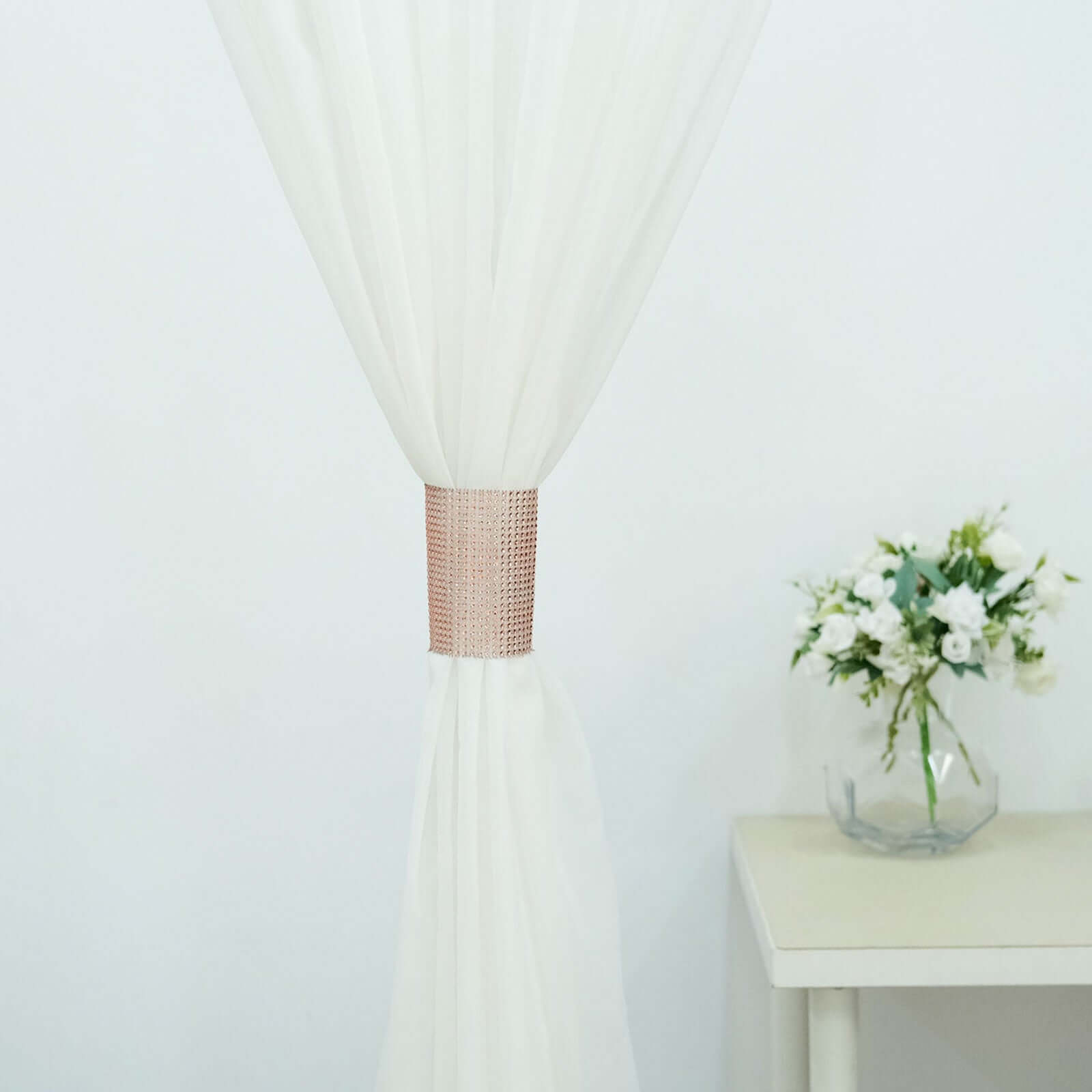 4 Pack Rose Gold Rhinestone Mesh Velcro Backdrop Curtain Bands, Large Chair Sash Clip Tie Backs - 5"X10"