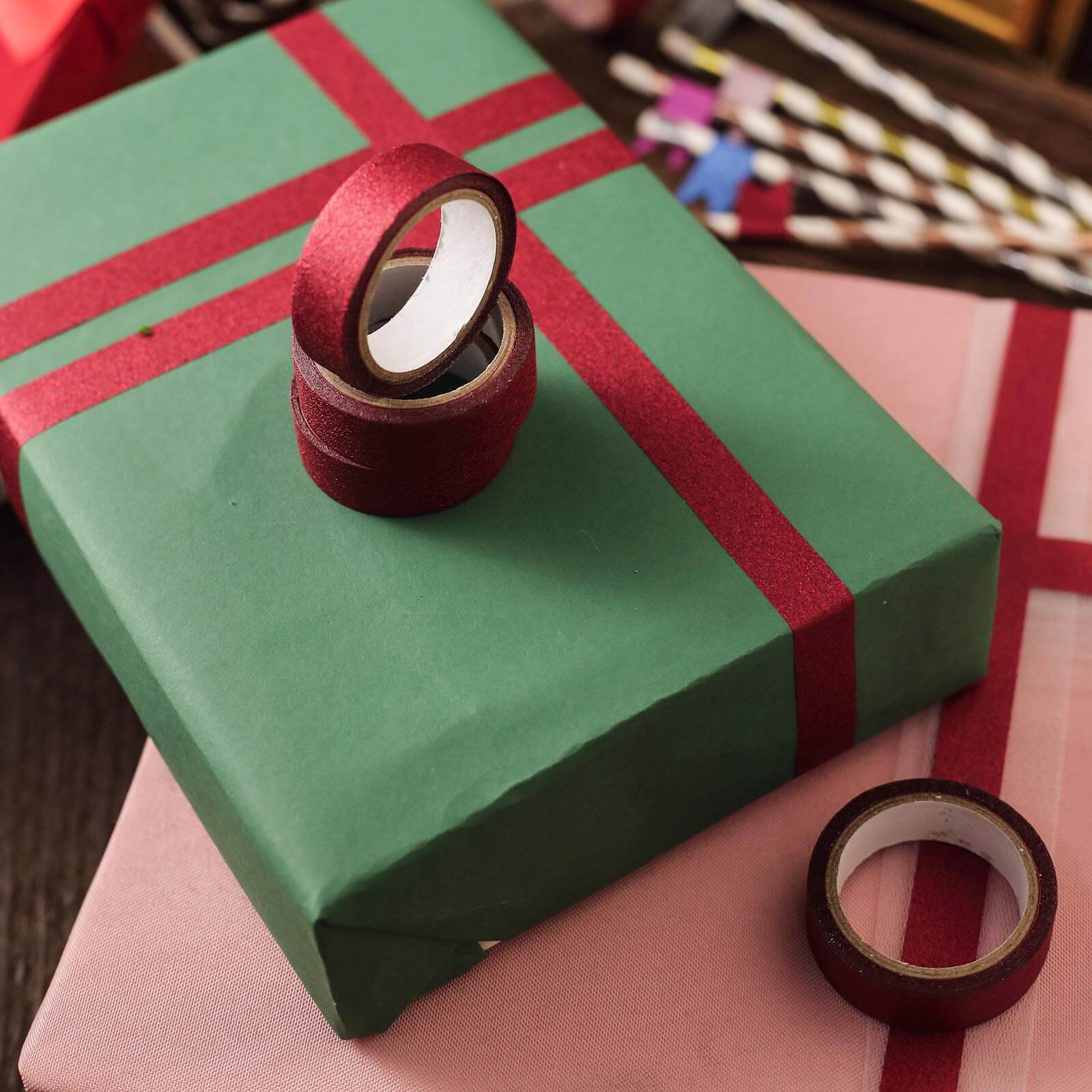 5 Pack 0.5"x5 Yards Burgundy Washi DIY Craft Glitter Tape