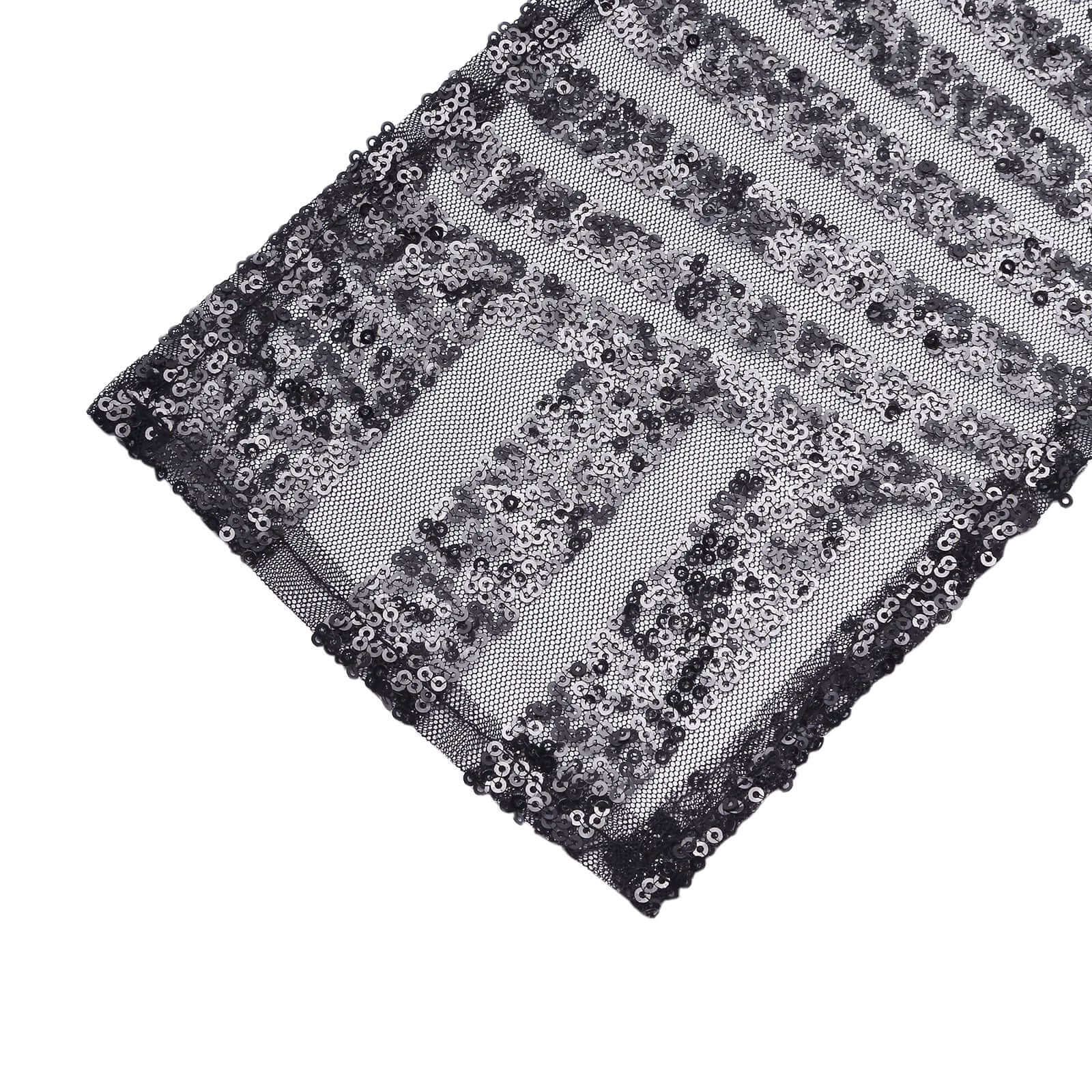 5 Pack Glitz Sequin Chair Sashes with Geometric Diamond Design 6"x88" Black - Glittering Accent for Weddings
