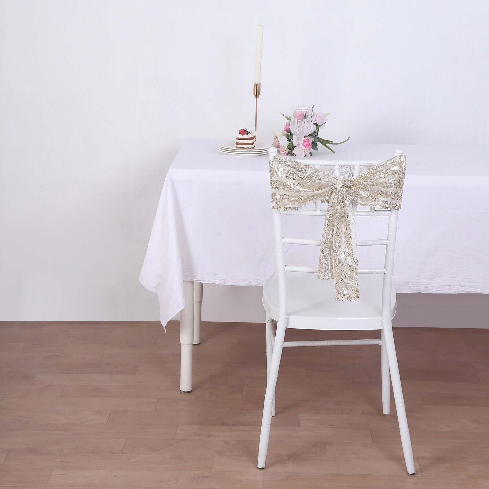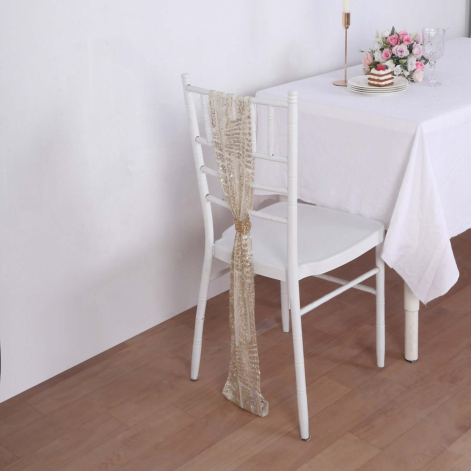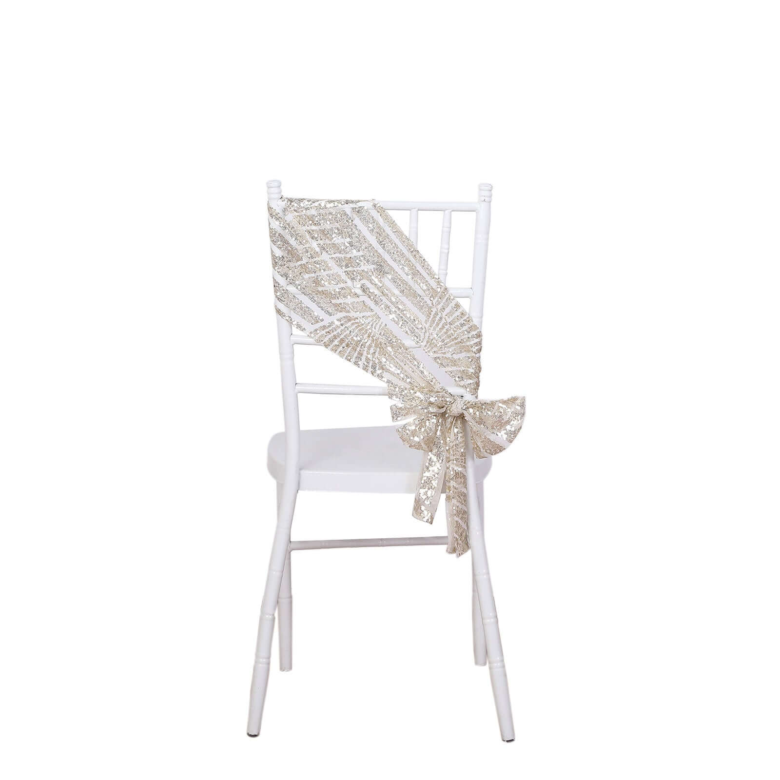 5 Pack Glitz Sequin Chair Sashes with Geometric Diamond Design 6"x88" Champagne