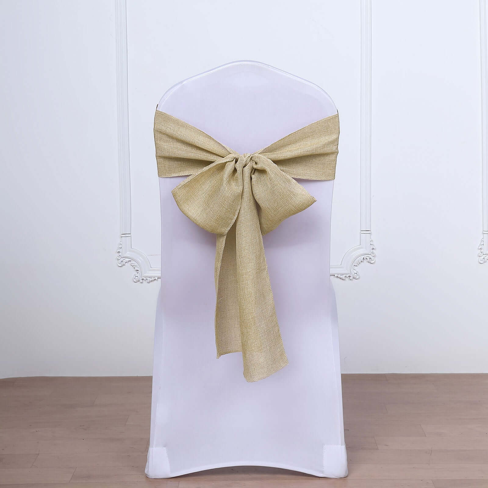 5 Pack Jute Faux Burlap 6"x108" Chair Sashes Natural - Boho Chic Linen Decor