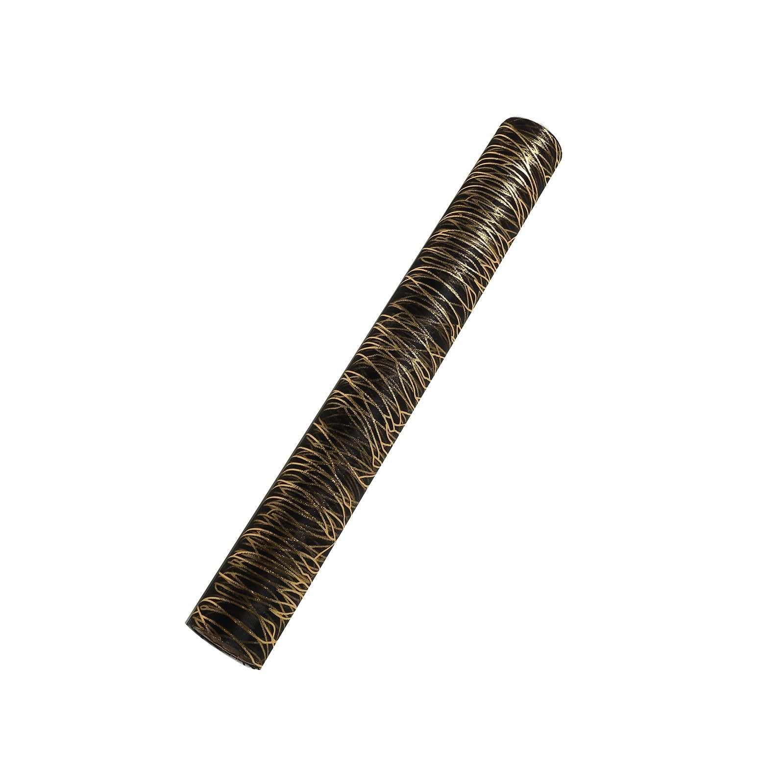 5 Pack Organza 12"x108" Table Runners Black - Gold Wave Design