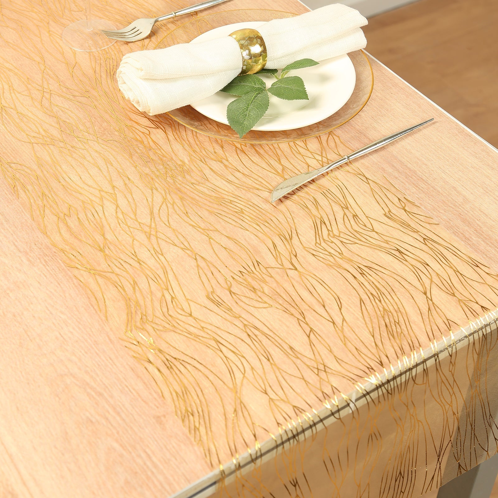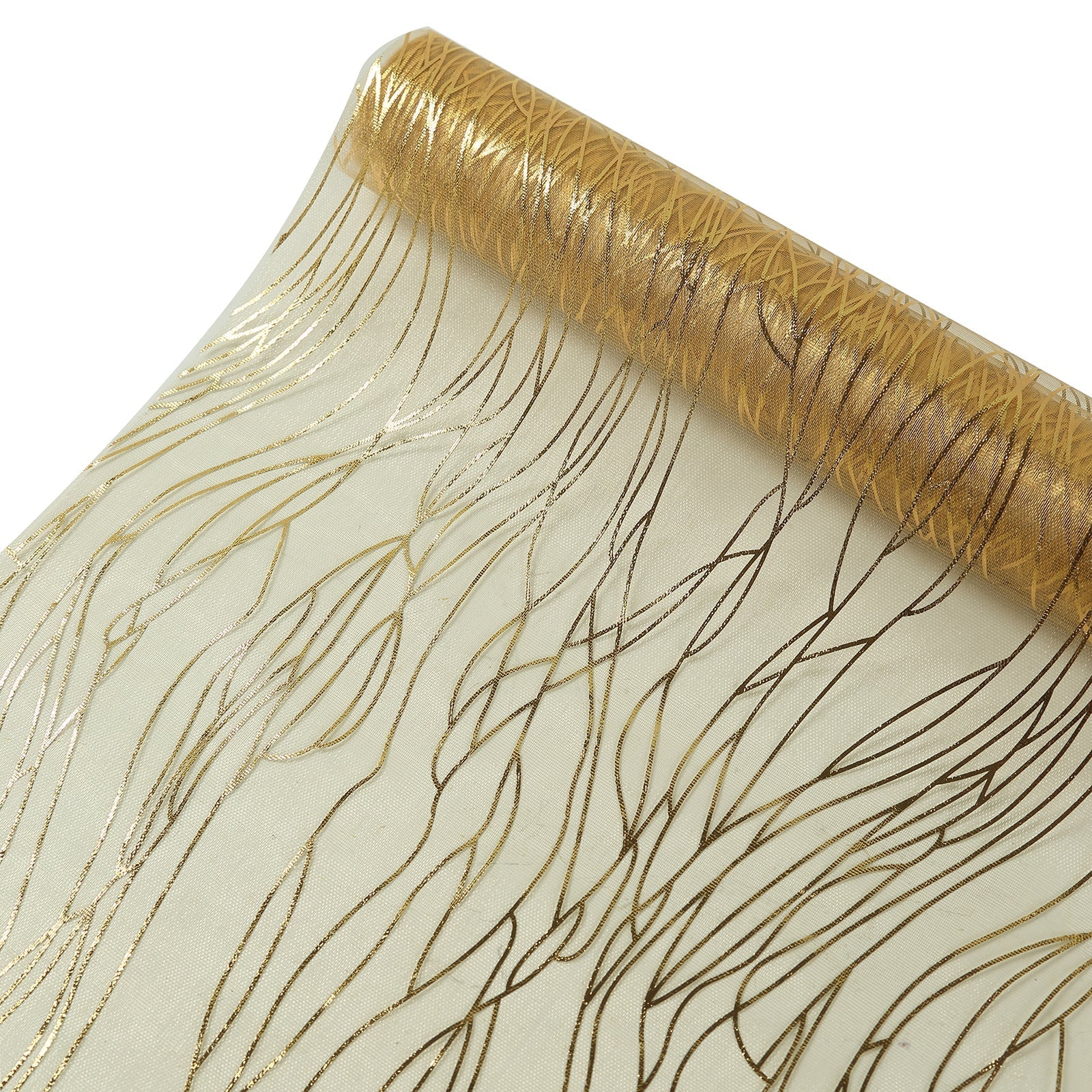 5 Pack Organza 12"x108" Table Runners Gold - Gold Wave Design