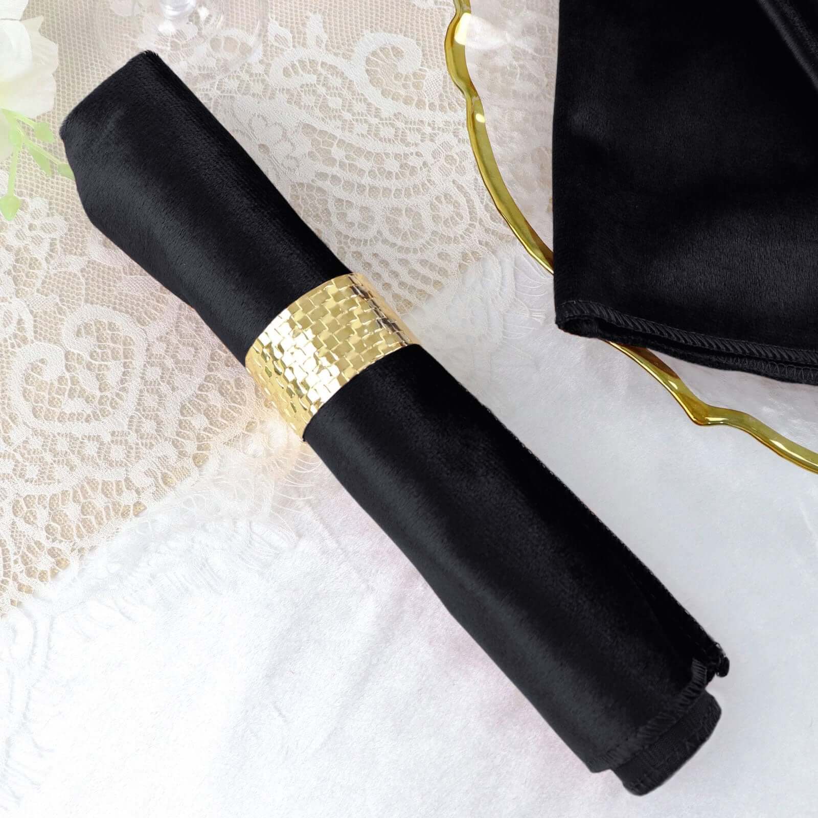 5 Pack Premium Velvet 20"x20" Napkins Black - Soft Sheen Finish Cloth Napkins for Upscale Gatherings