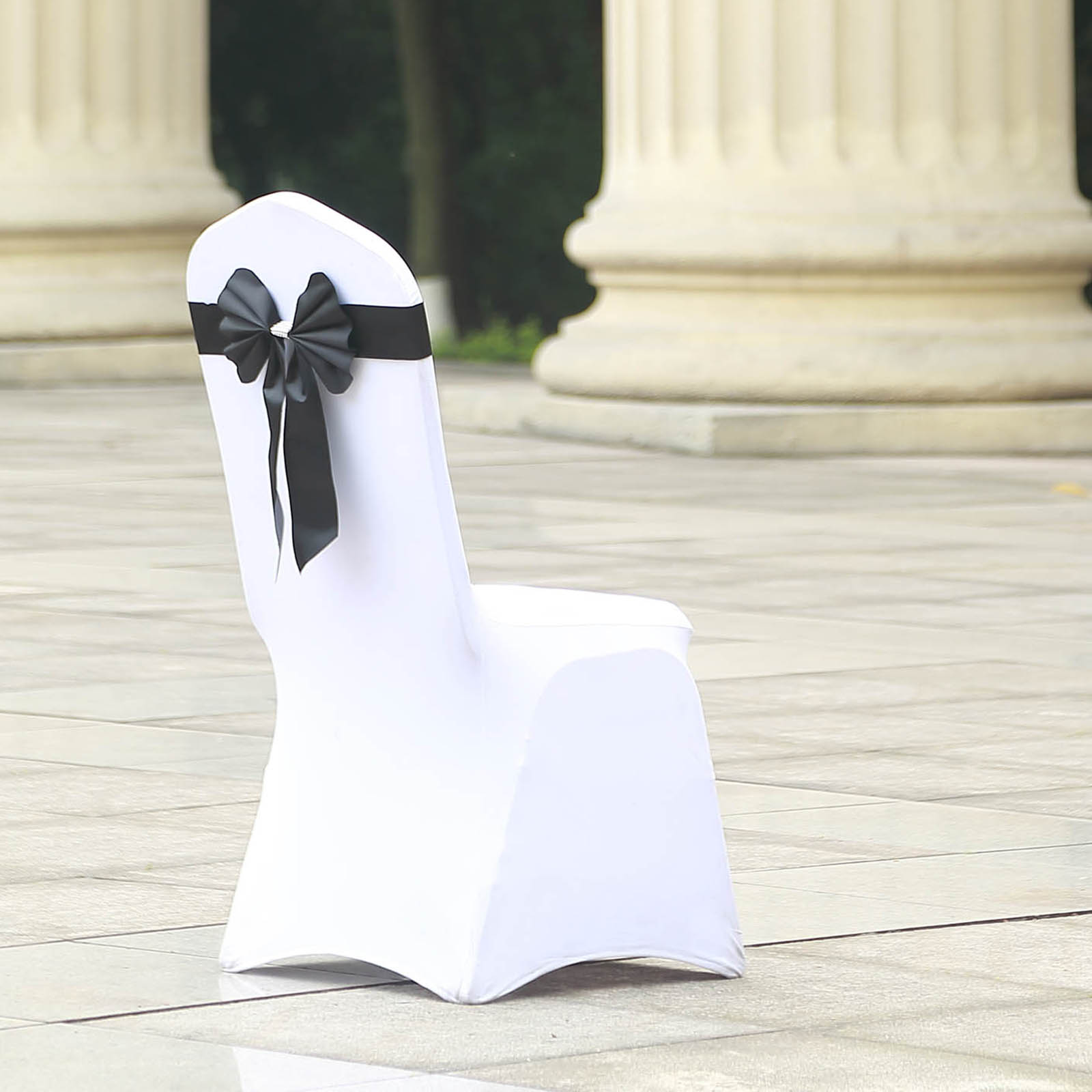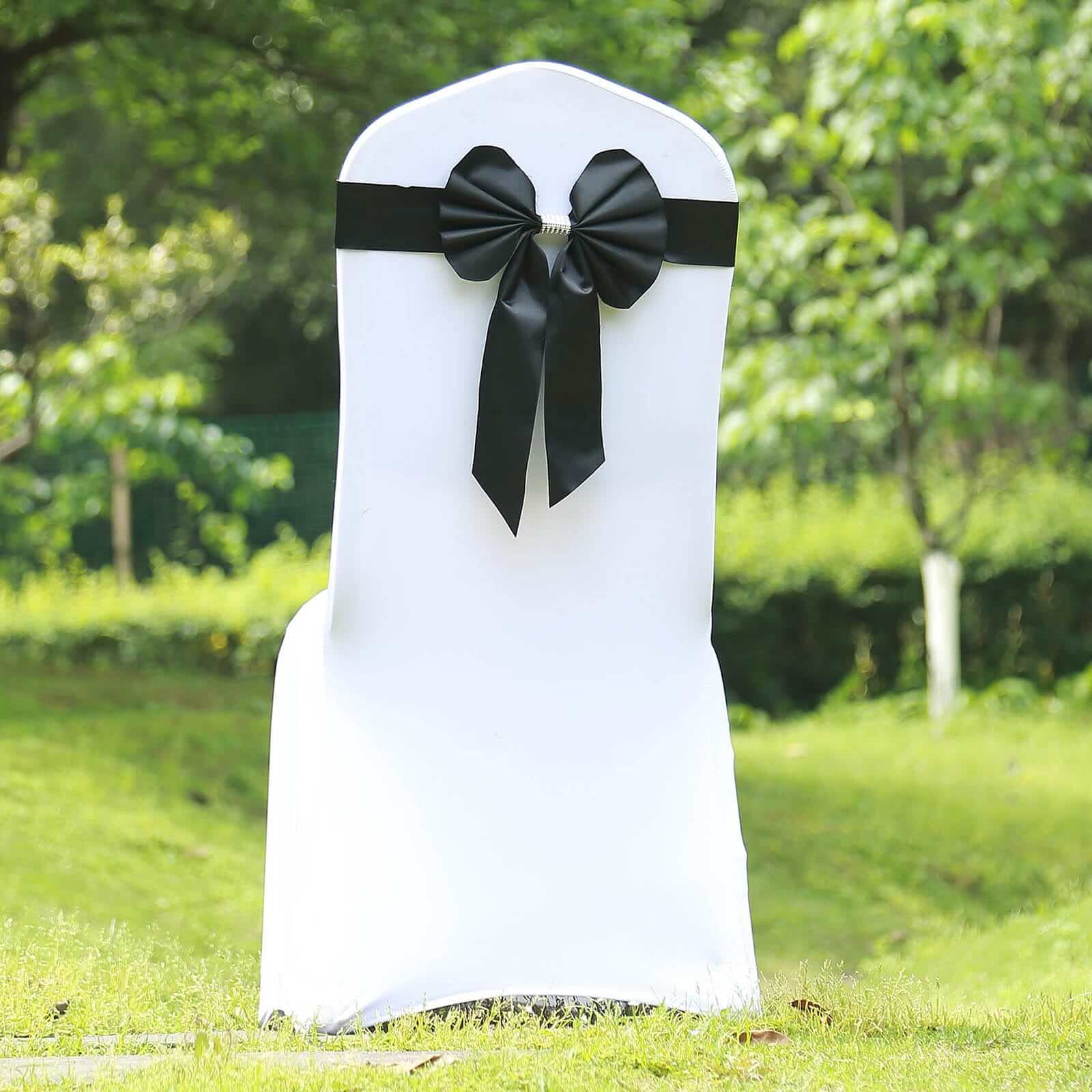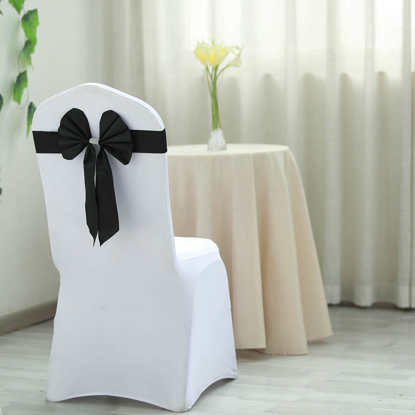 5 Pack Satin Faux Leather Chair Sashes Black - Durable Double Sided Pre-tied Bow Tie Chair Bands with Diamond Rhinestone Buckles Luxurious Party Decor