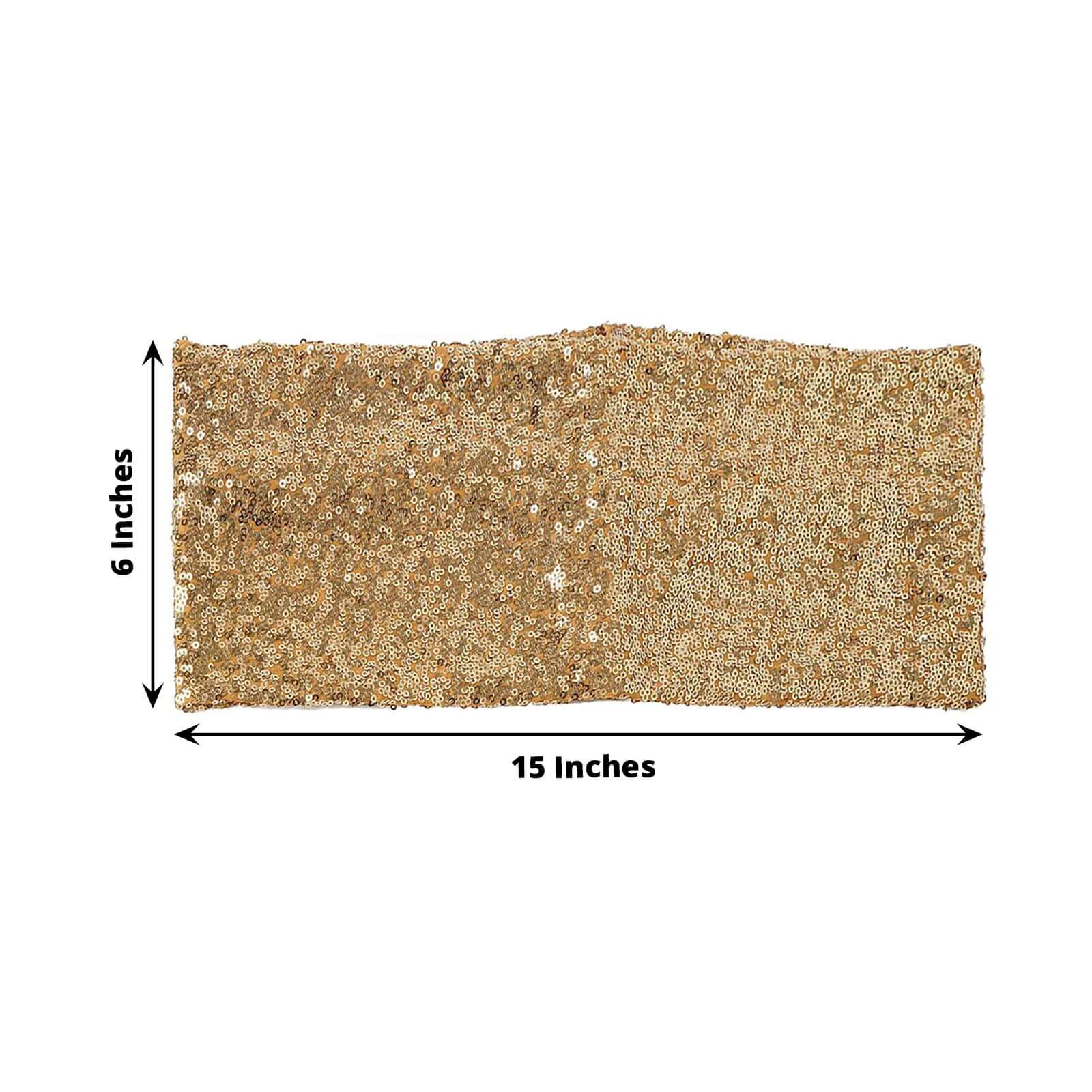 5 Pack Sequin Spandex Chair Sashes Gold - Sparkly Stretch Chair Bands for Glamorous Events 6"x15"