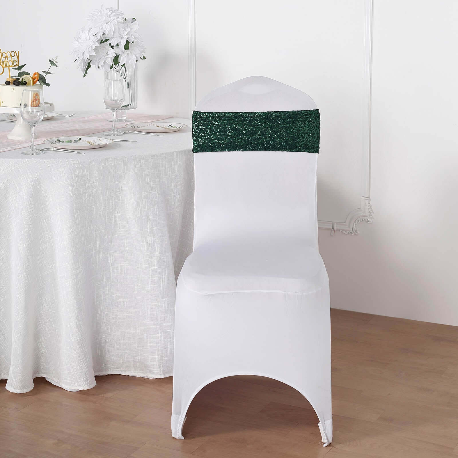 5 Pack Sequin Spandex Chair Sashes Hunter Emerald Green - Stretch Chair Bands 6"x15"