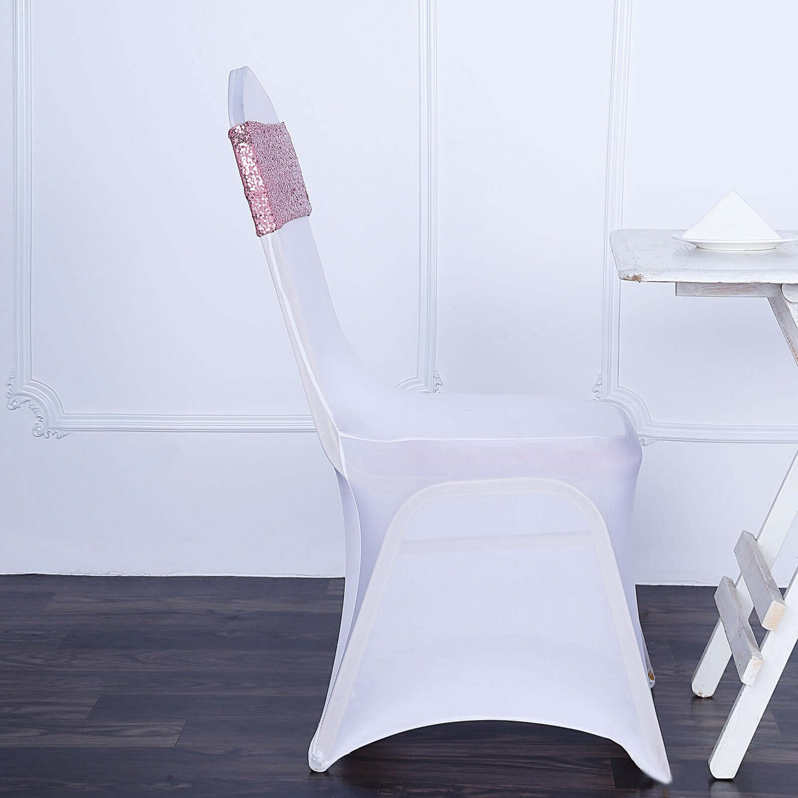 5 Pack Sequin Spandex Chair Sashes Rose Gold - Stretch Chair Bands 6"x15"