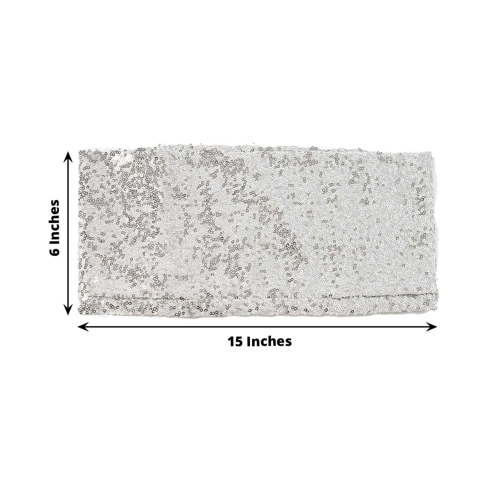 5 Pack Sequin Spandex Chair Sashes Silver - Stretch Chair Bands 6"x15"