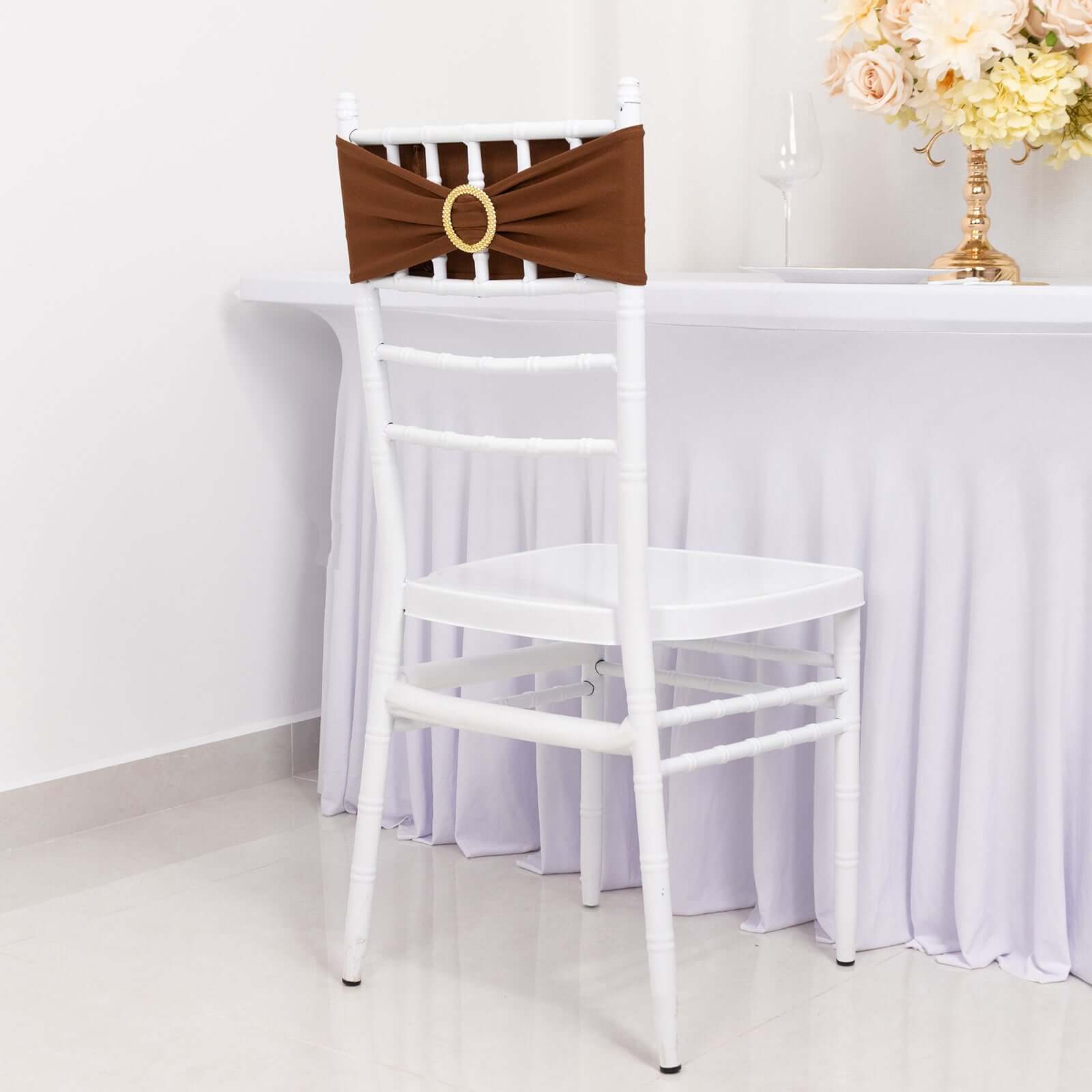 5 Pack Spandex Chair Sashes Cinnamon Brown with Gold Rhinestone Buckles - Reusable Four-Way Stretch Sash Bands 5"x14"