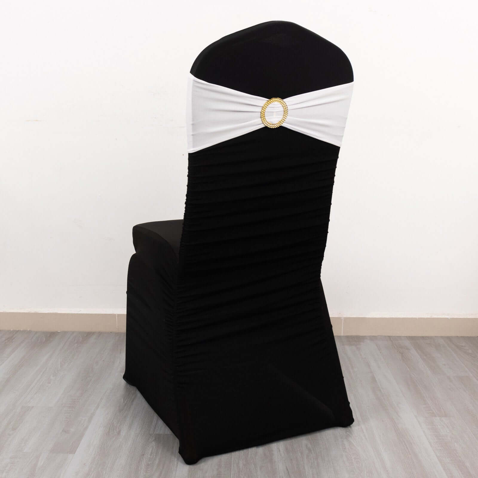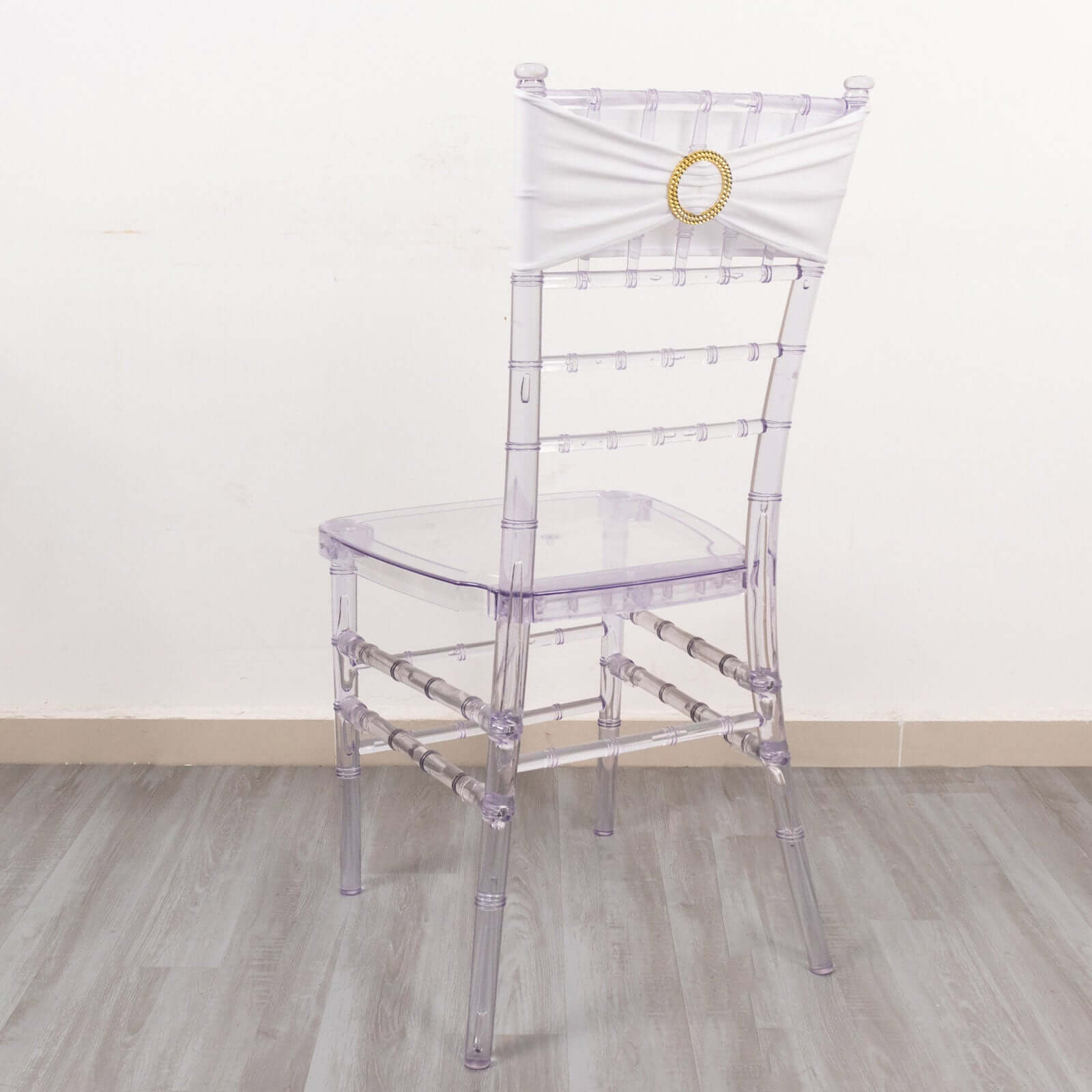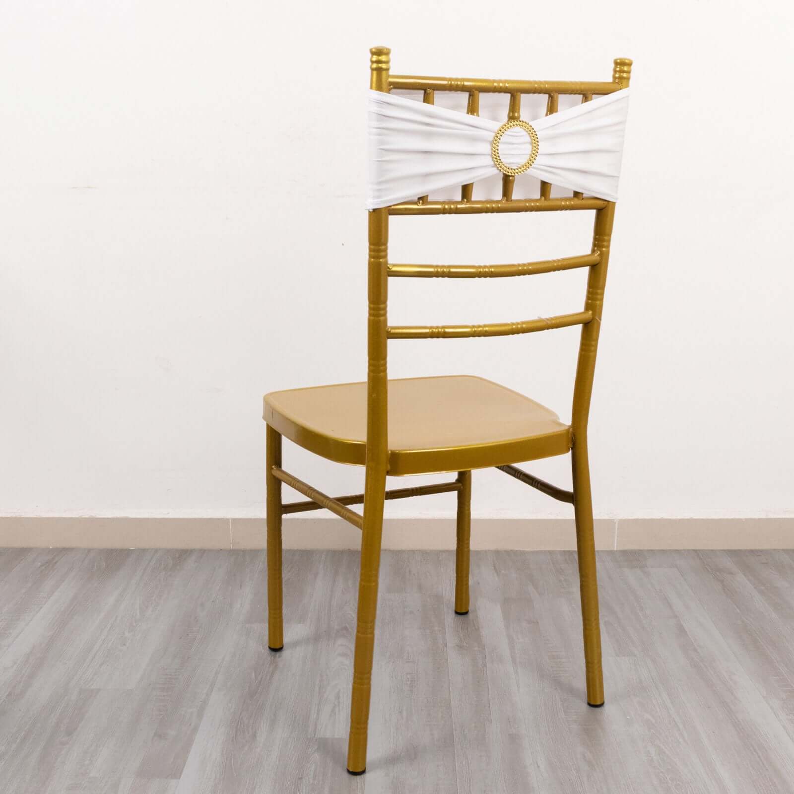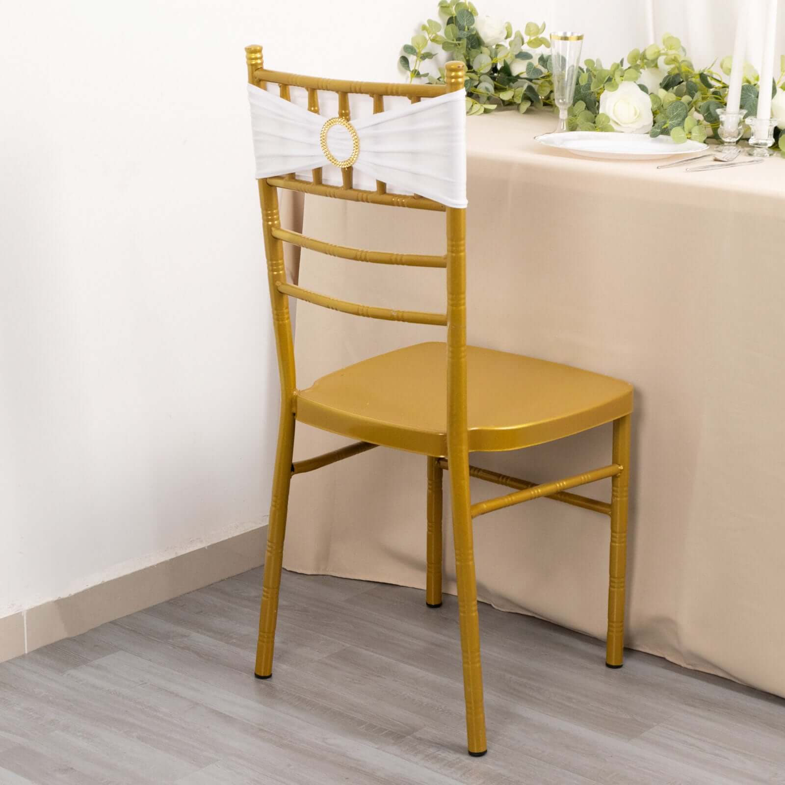 5 Pack Spandex Chair Sashes White with Gold Rhinestone Buckles - Reusable Four-Way Stretch Sash Bands for Classy & Effortless Wedding & Party Decor 5"x14"