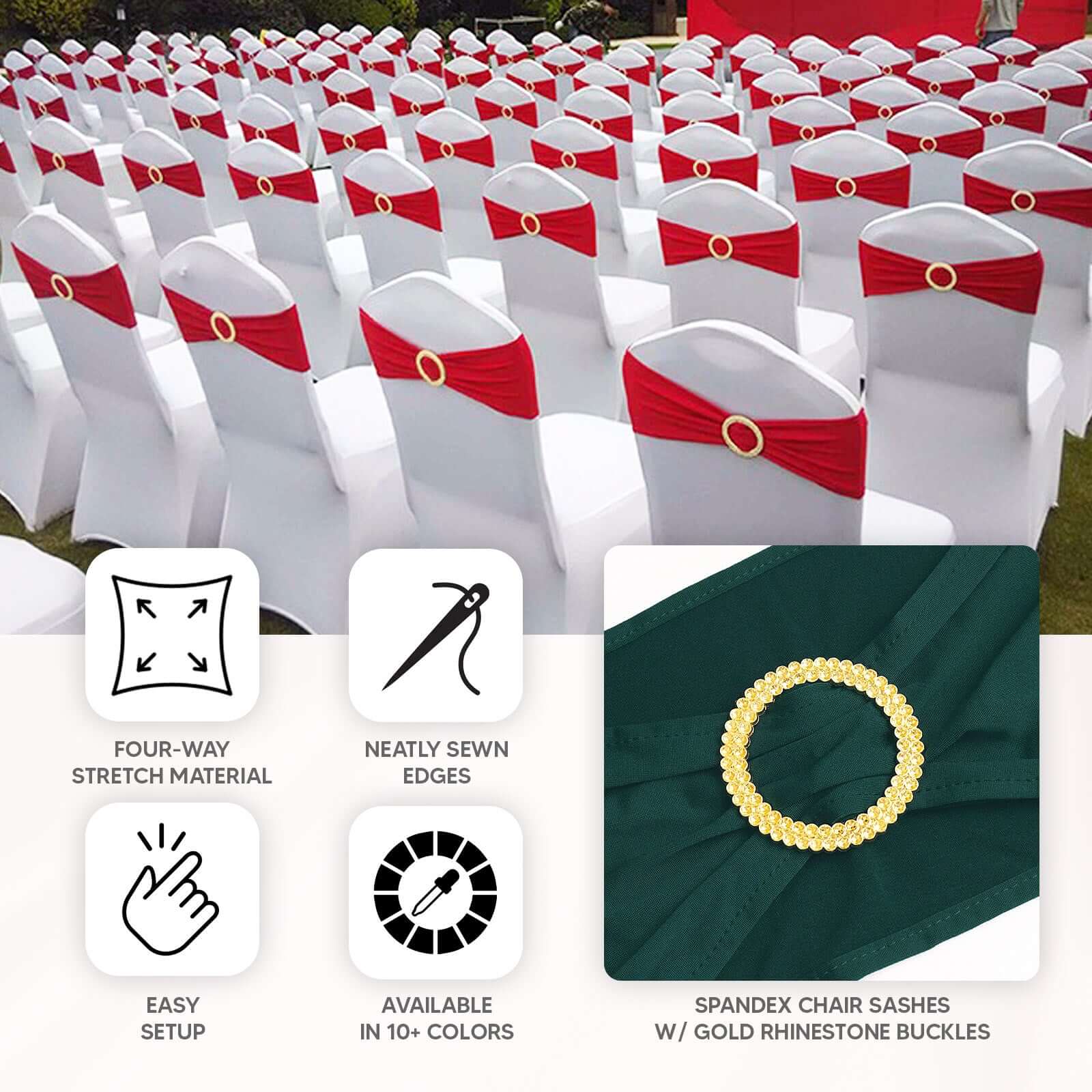 - Listing is for Spandex Chair Sashes with Buckles Only. Other decorative accessories are not included.