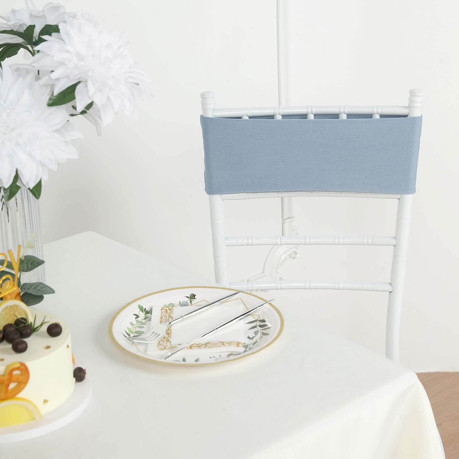 5 Pack Stretch Spandex Chair Sashes Dusty Blue - Fitted Finish Two Ply Heavy Duty Chair Bands 5"x12"